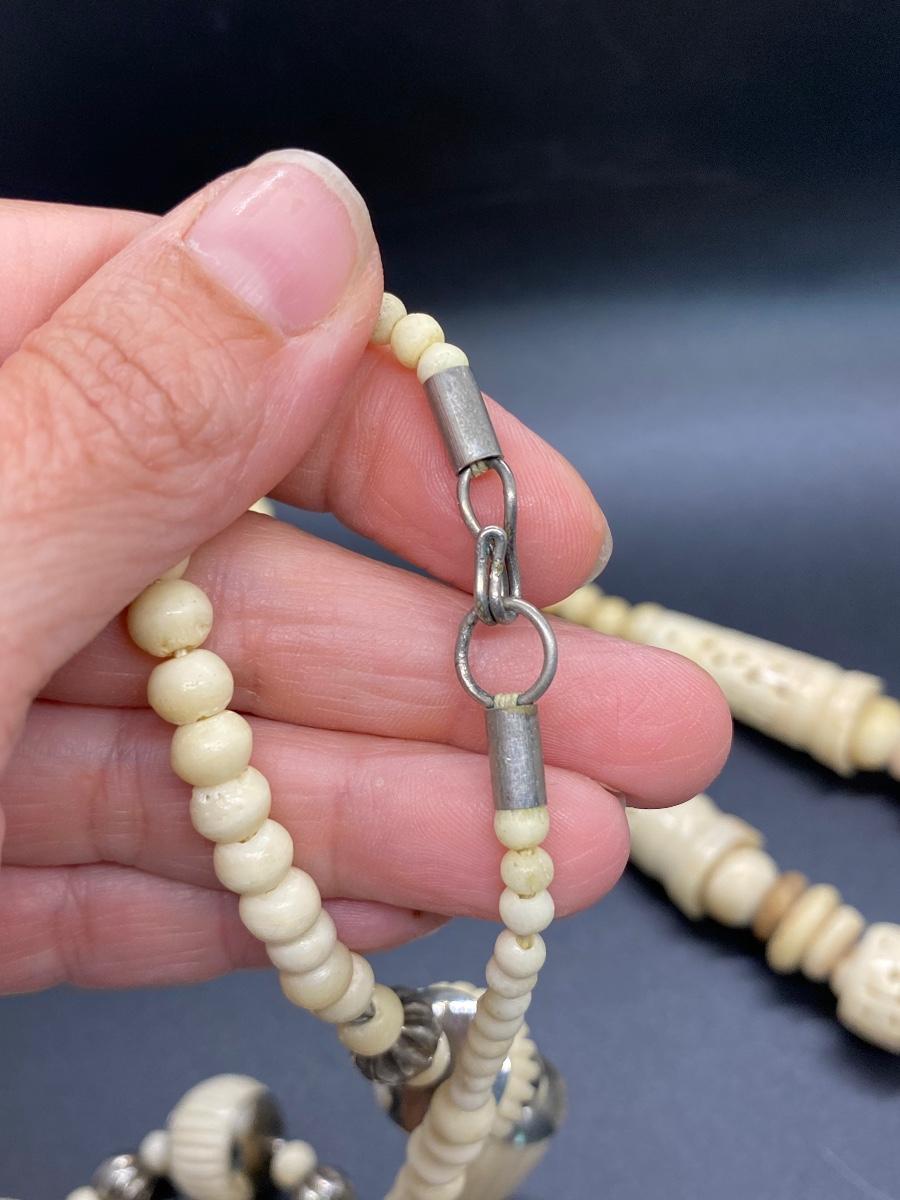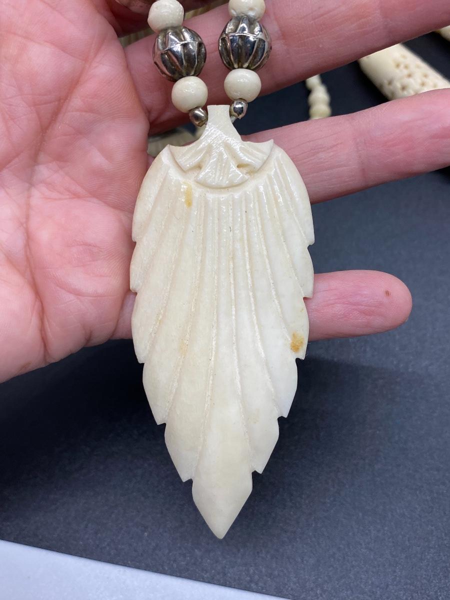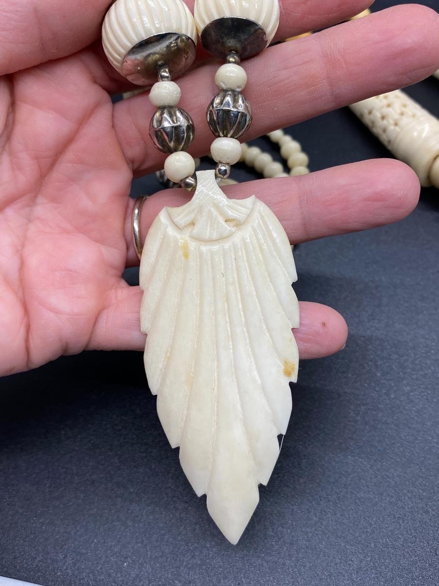 Pair of Vintage Carved Antler Bone Stone Beaded Necklaces