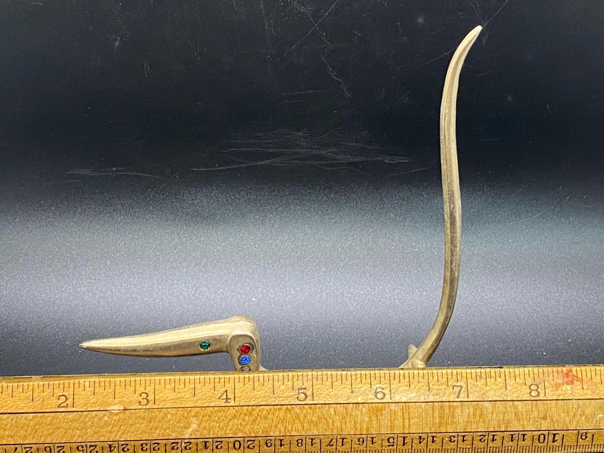 Vintage Small Brass Sculpture Ring Holder of Dachshund with Colored Gems