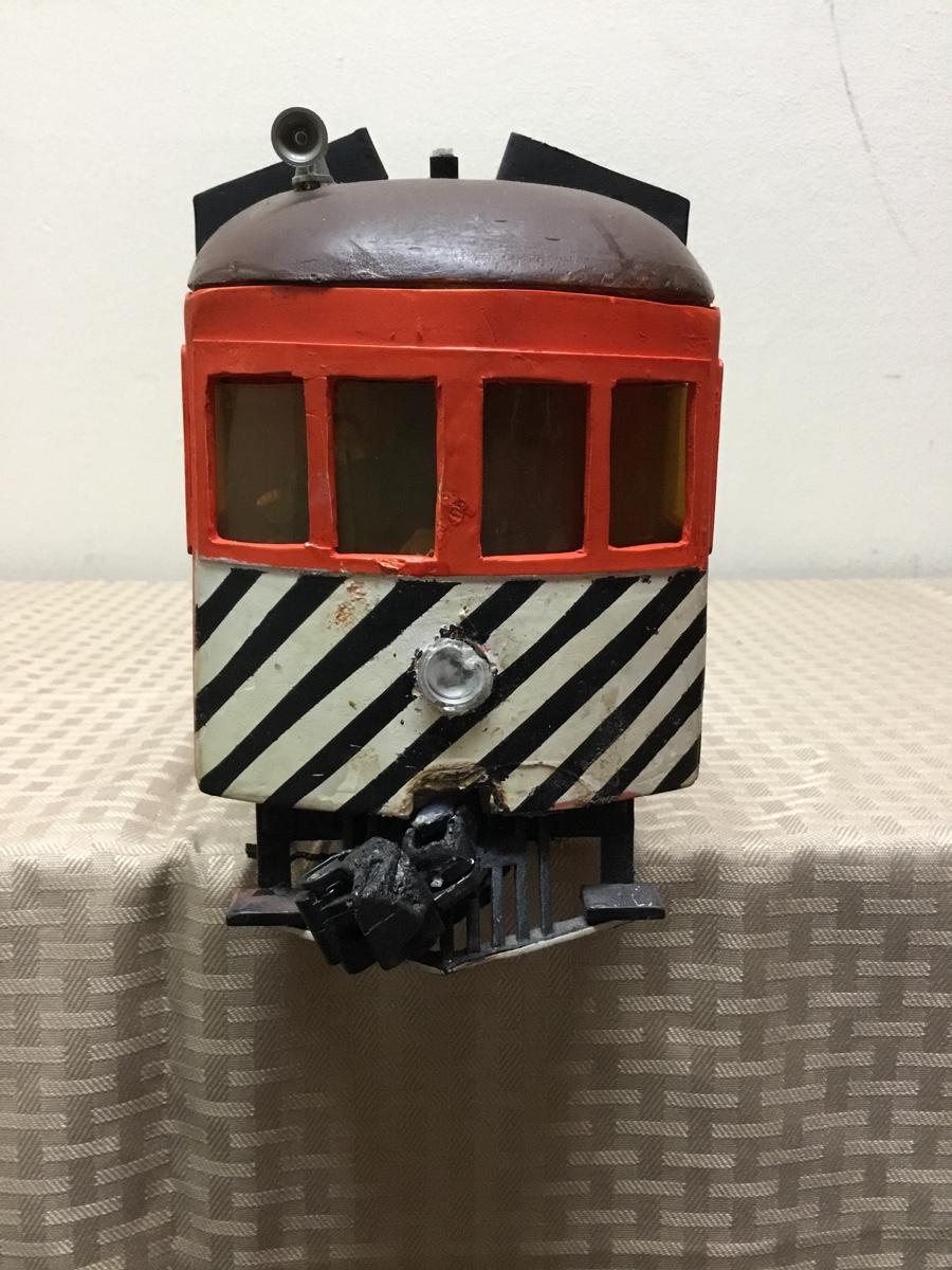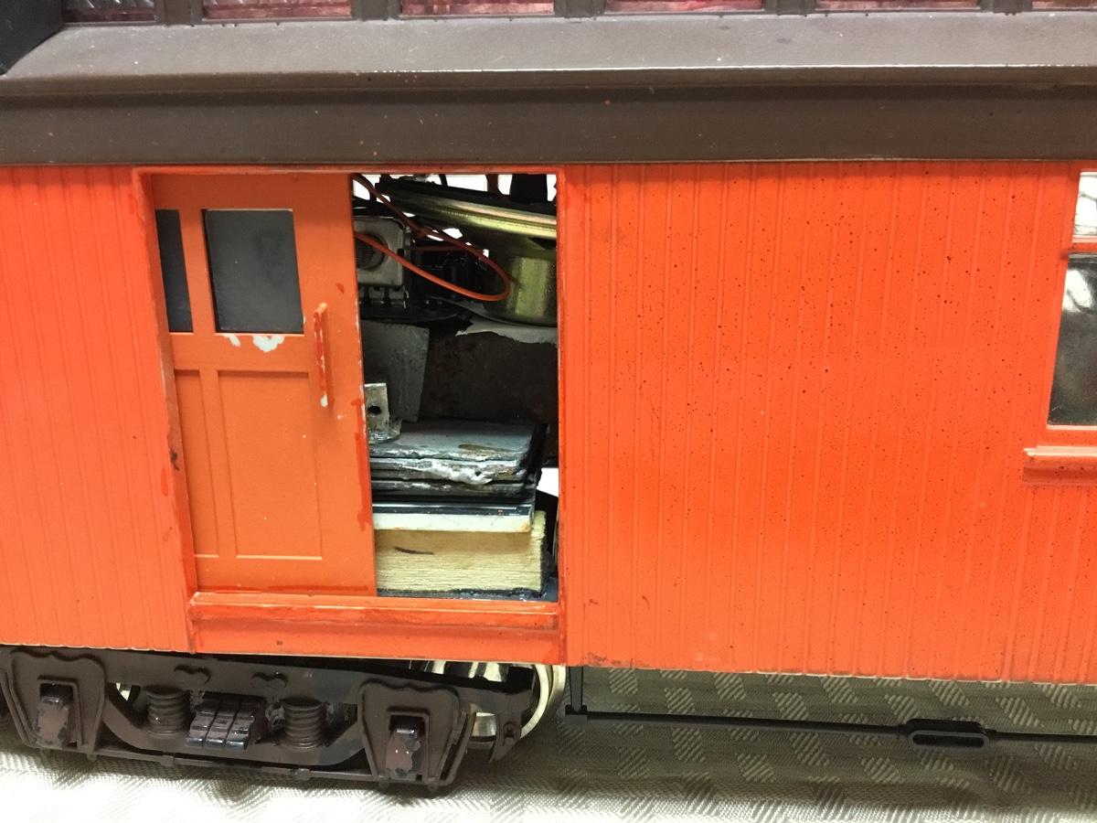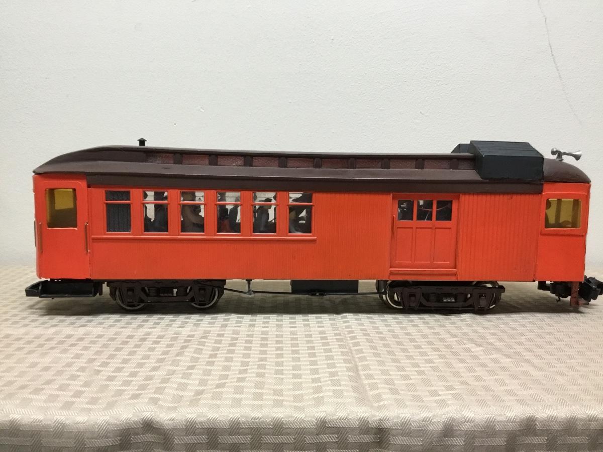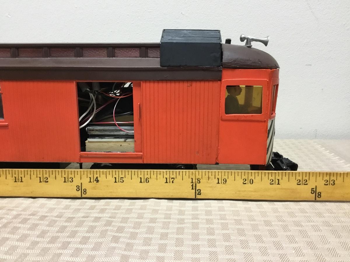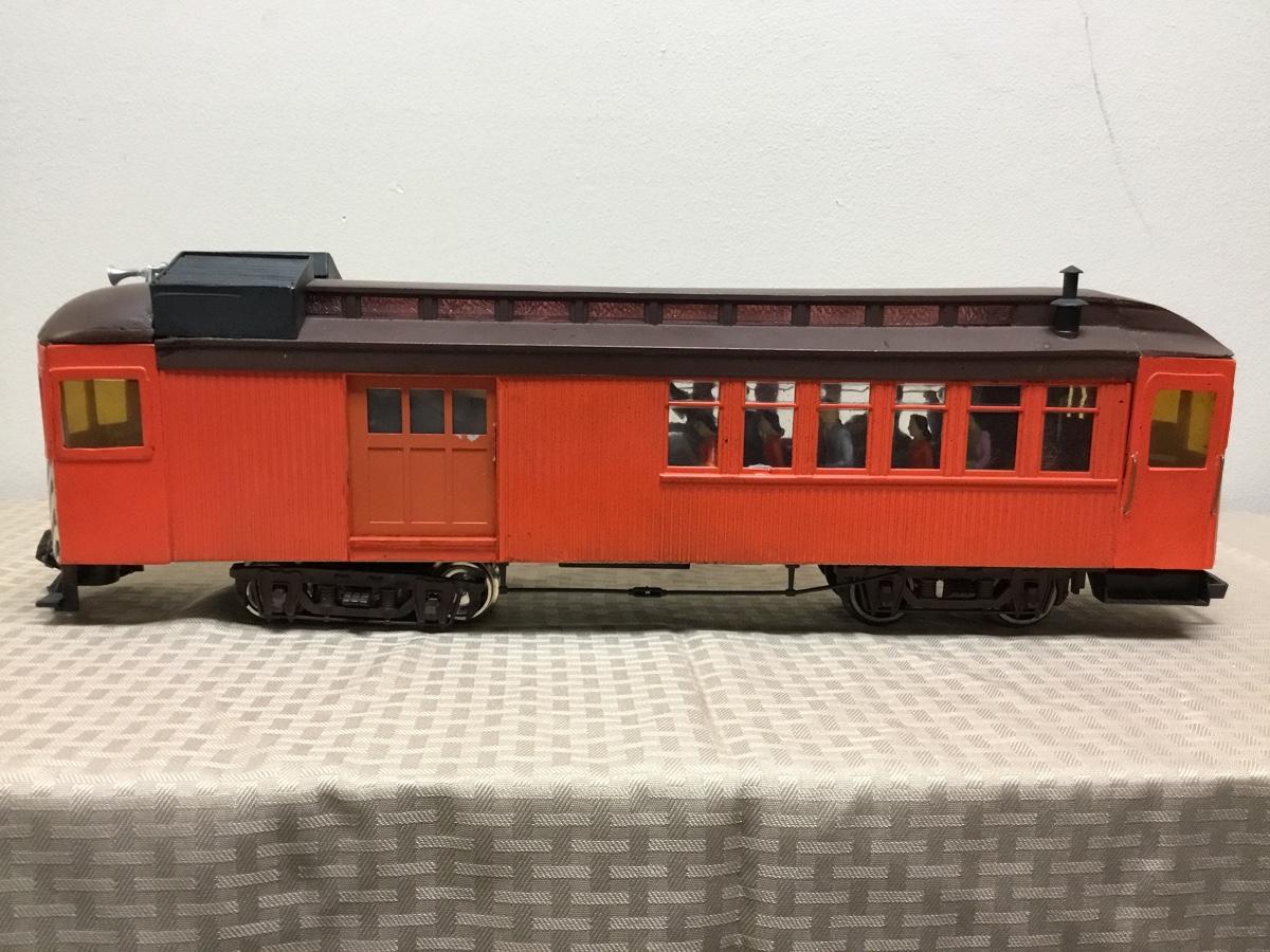 G scale Passenger Car, orange. Hand made, self-powered. Model Train