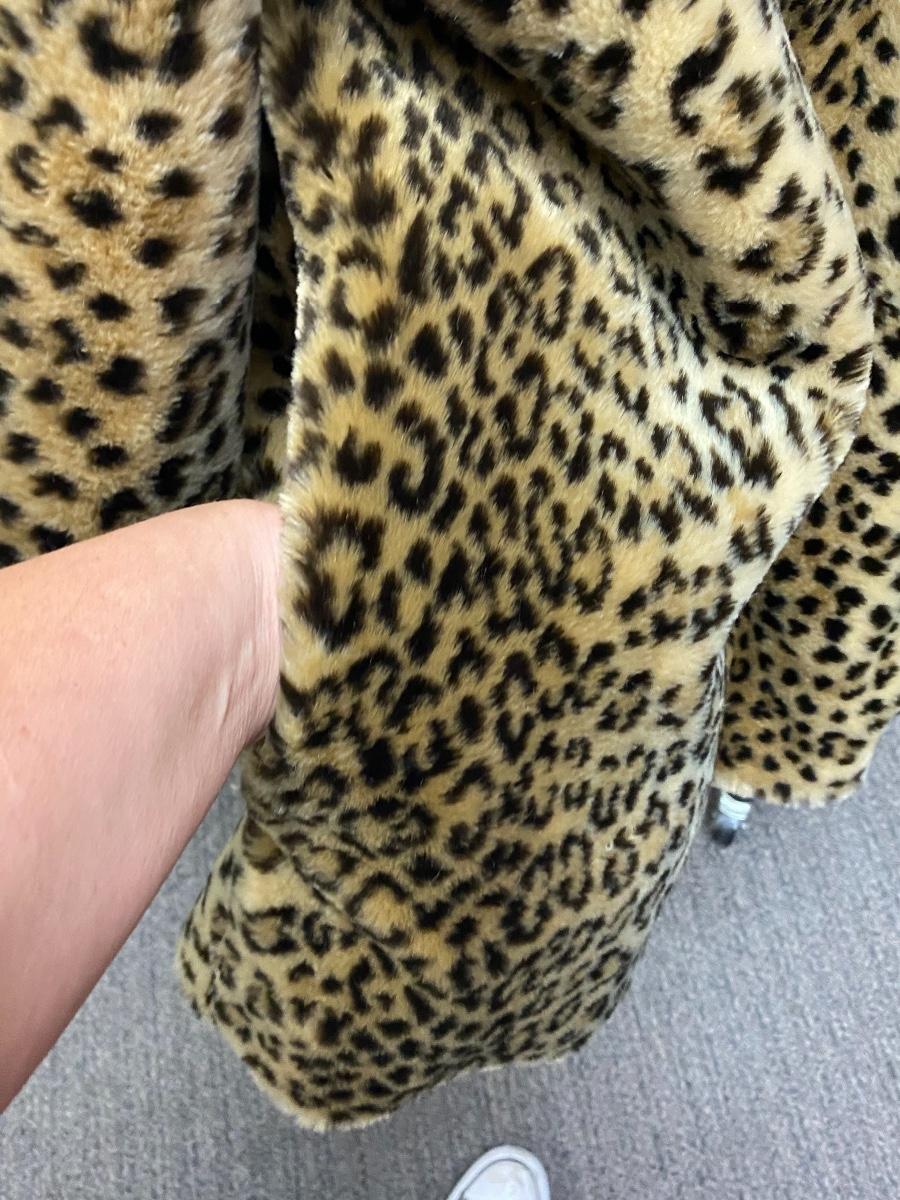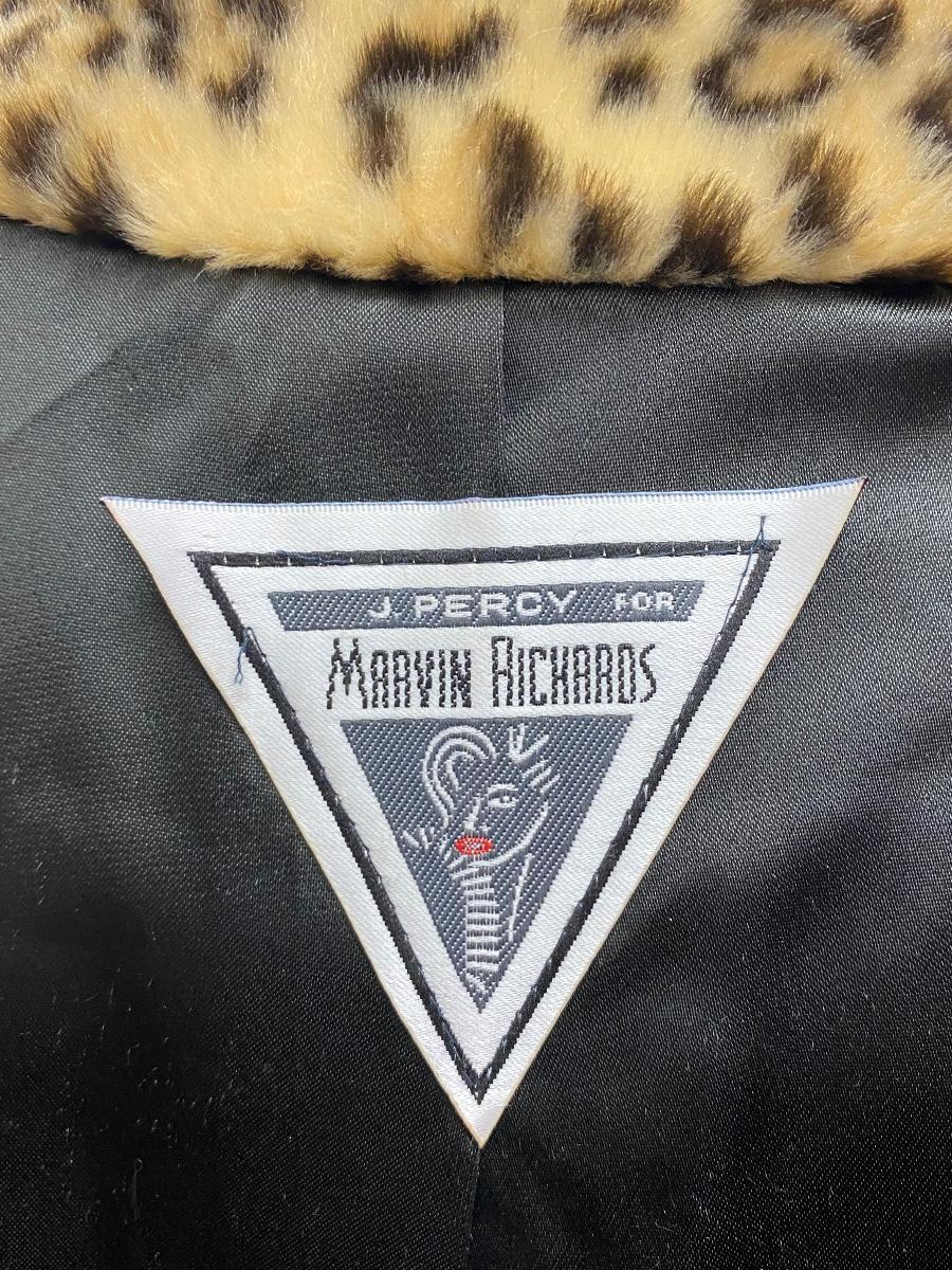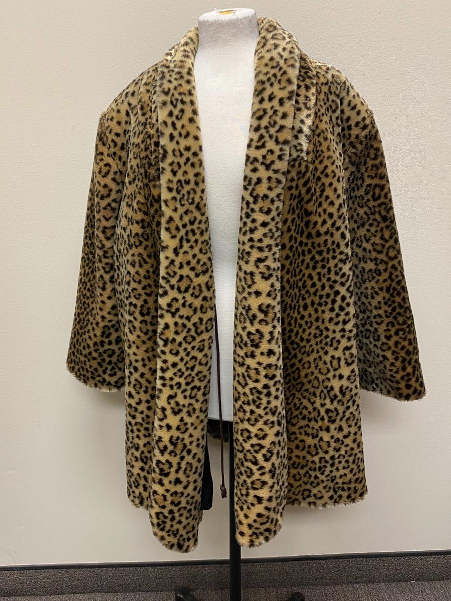 Faux Leopard Print Swing Style Coat Jacket by Marvin Richards Size Medium. inside tie string. Good condition.