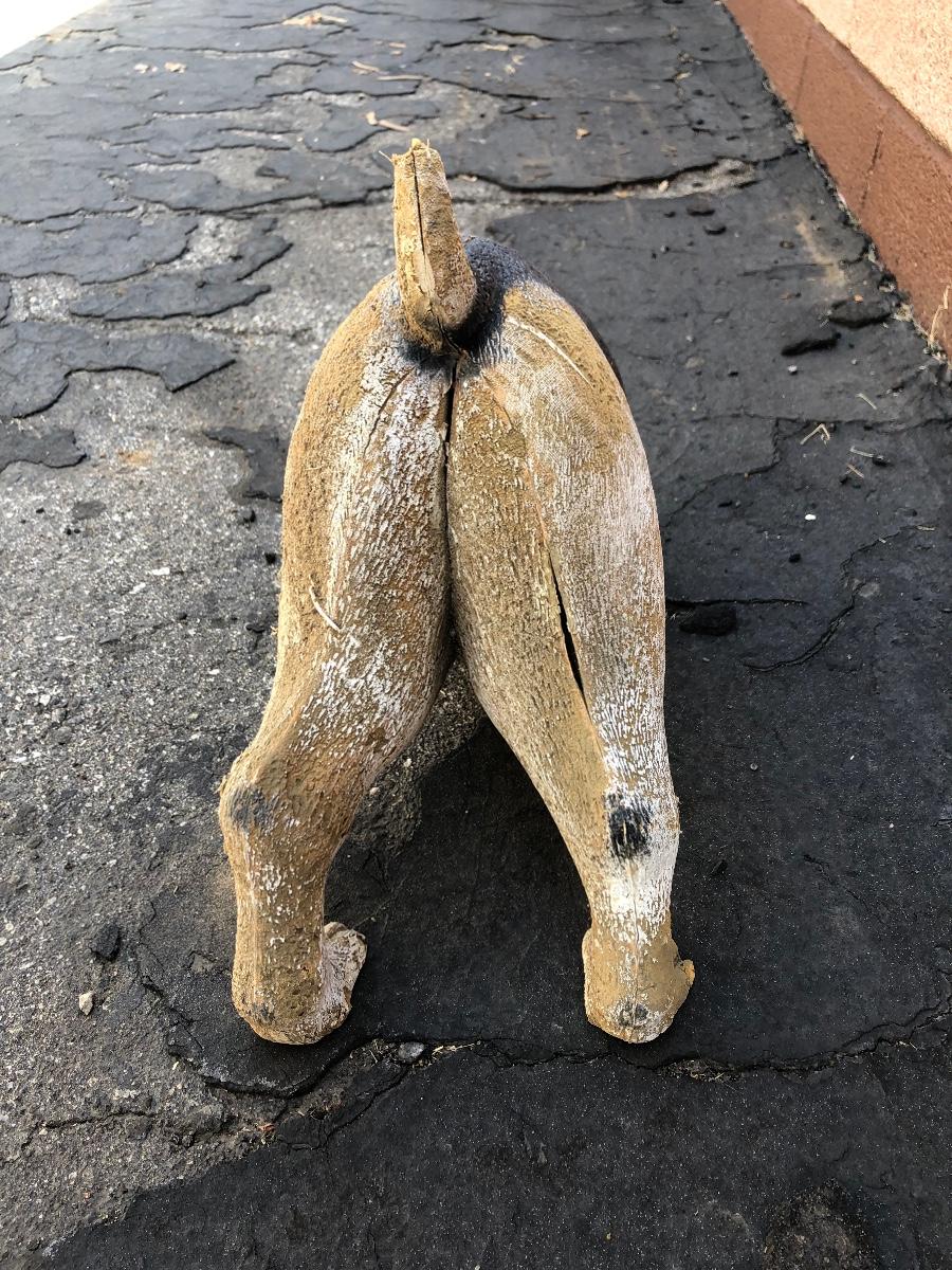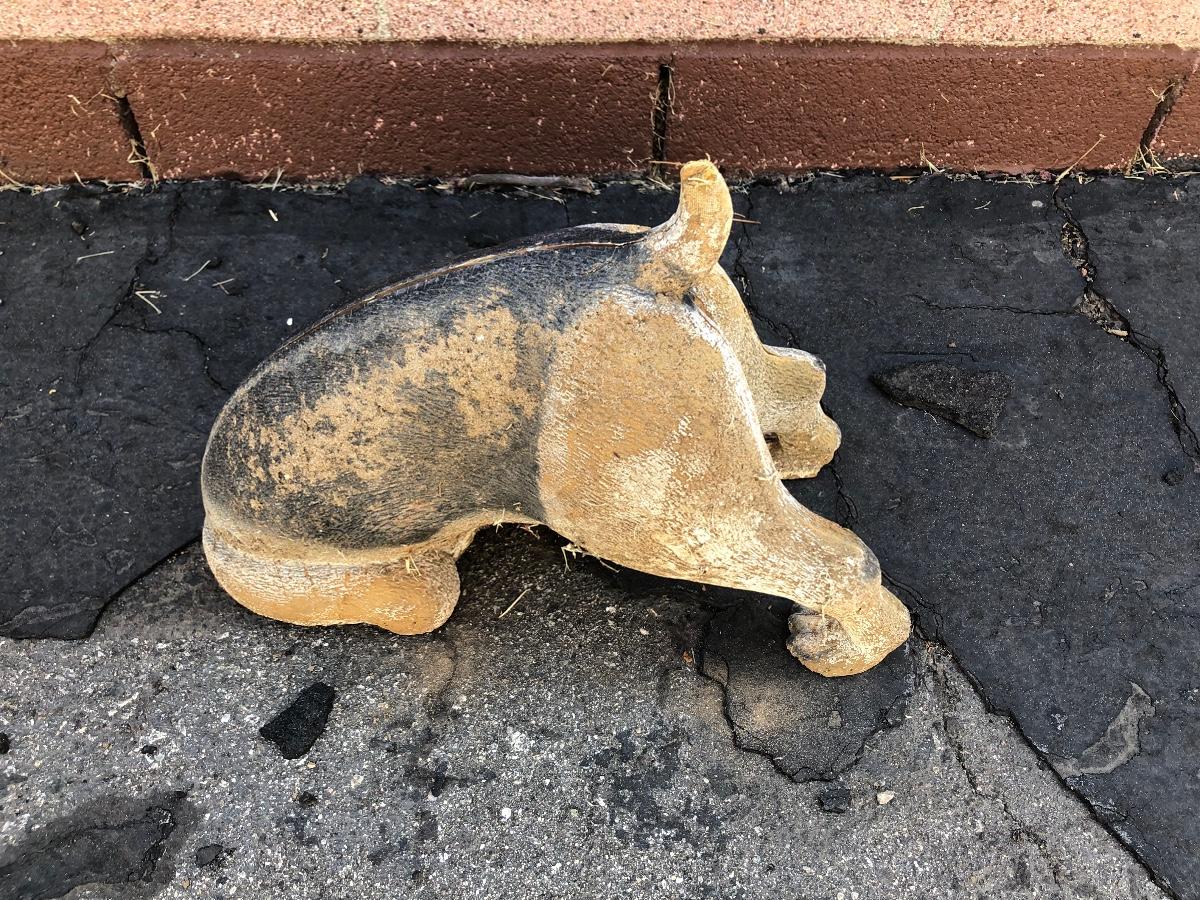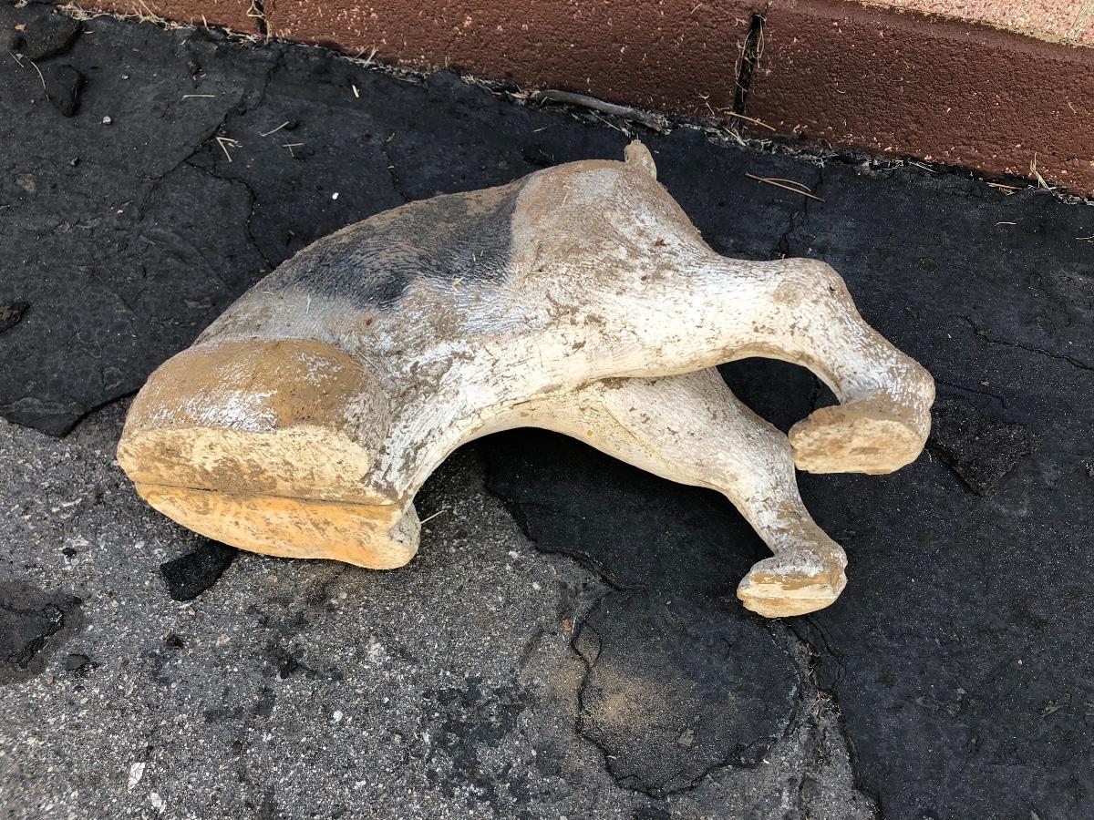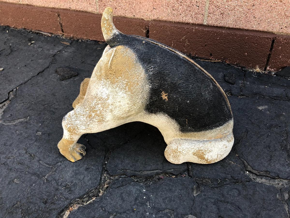 Dog digging in Dirt Garden Yard Art Statue. Weathered.