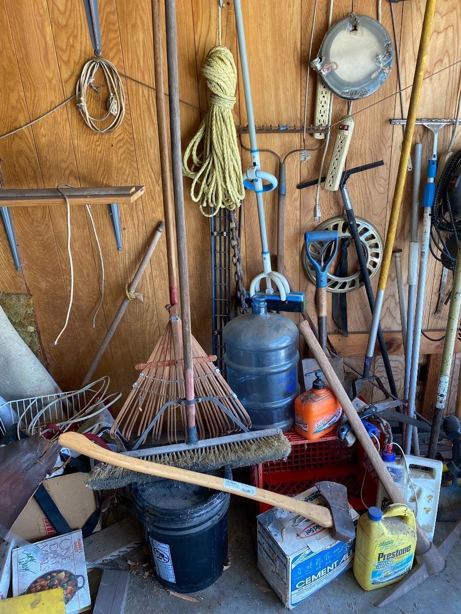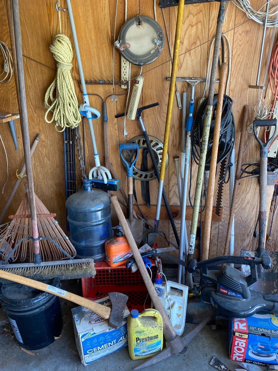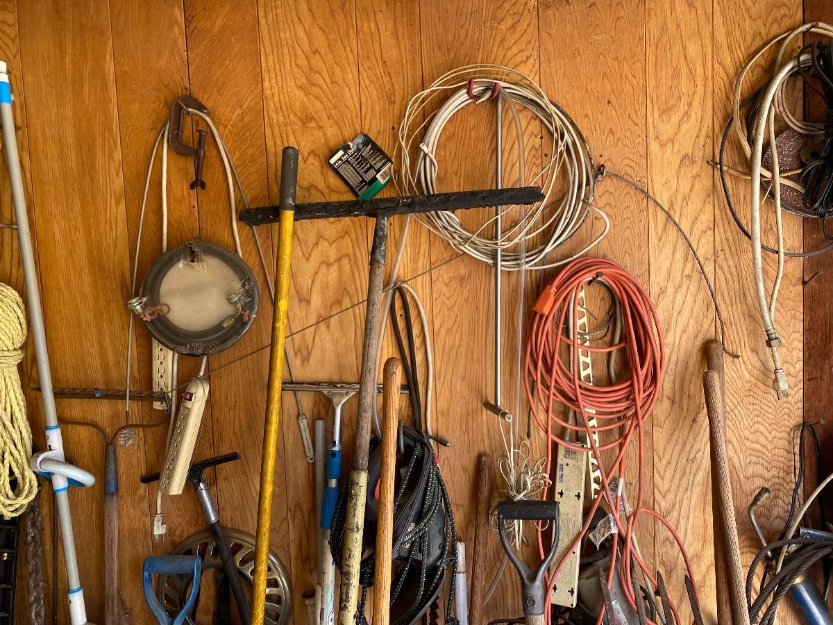 Garage Wall Tool Lot Hand Tools Garden Tools Electrical Cords
