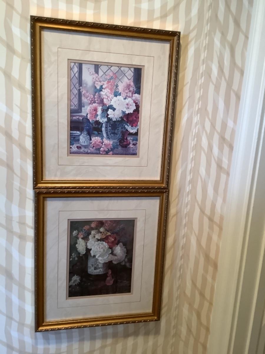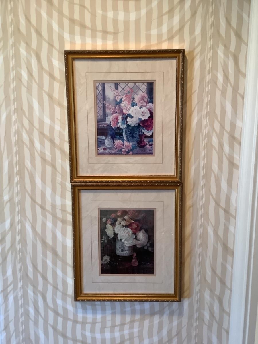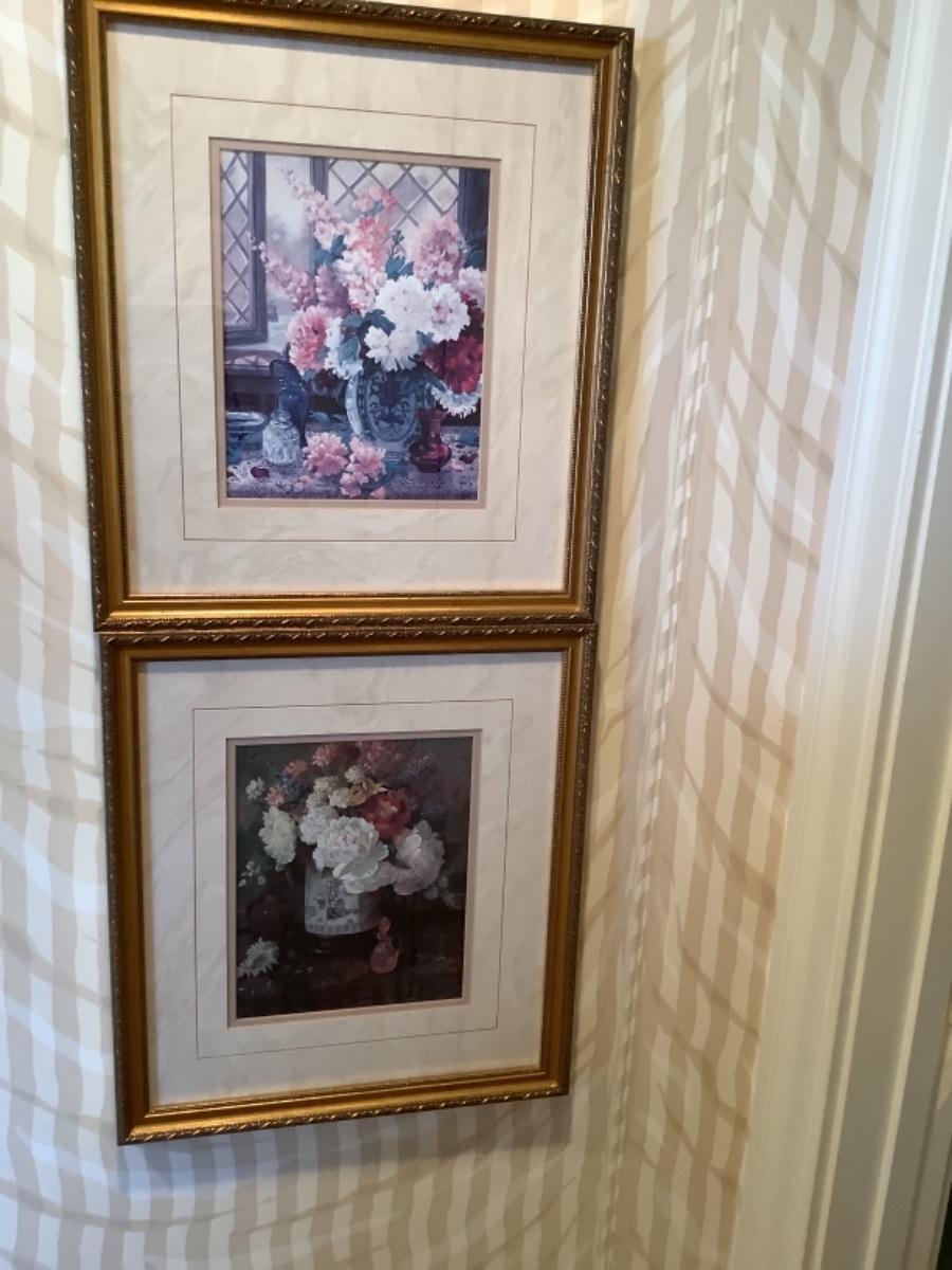 Pair of Floral Prints in Gold Frames -