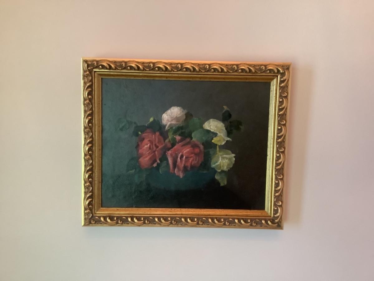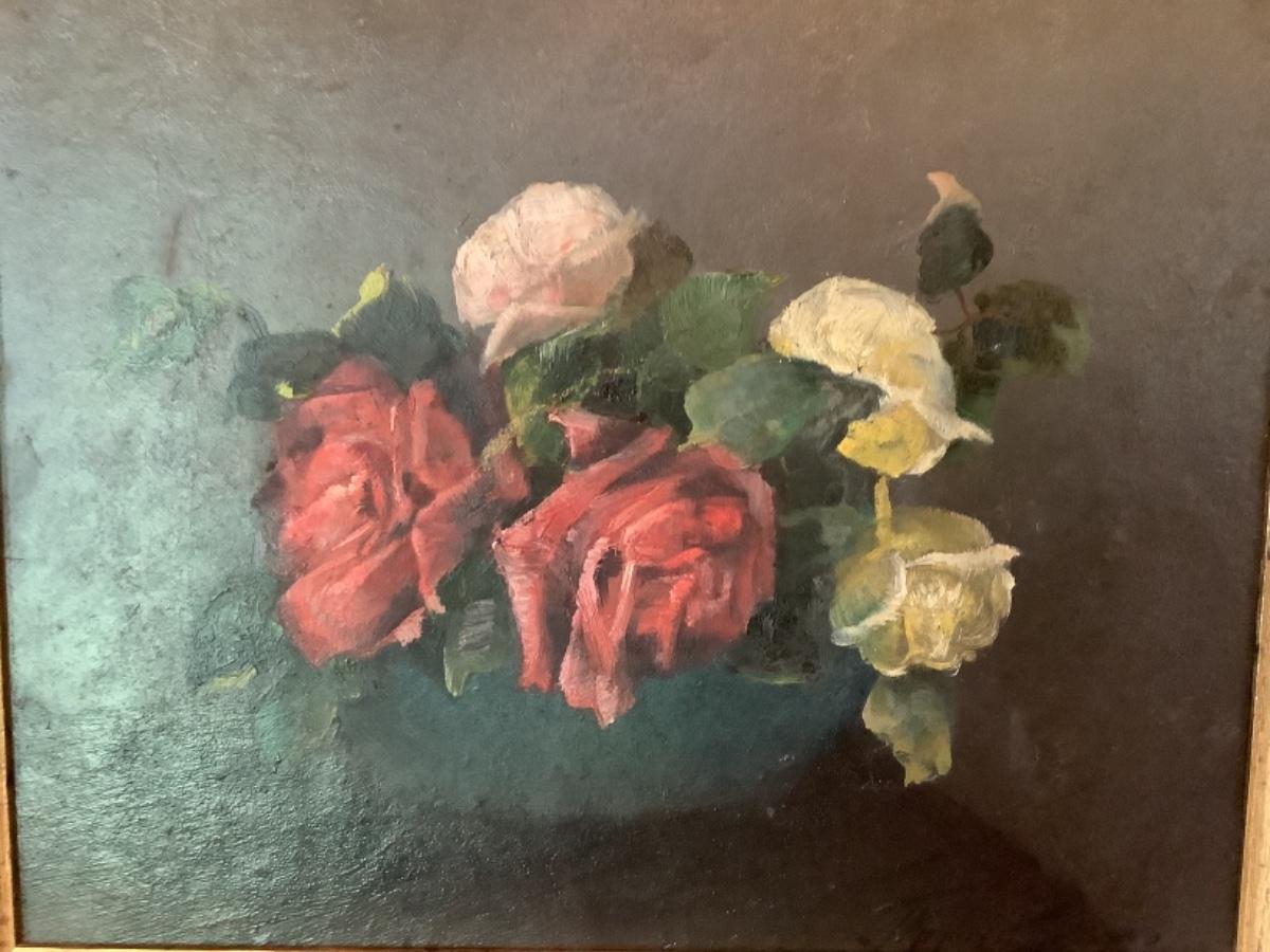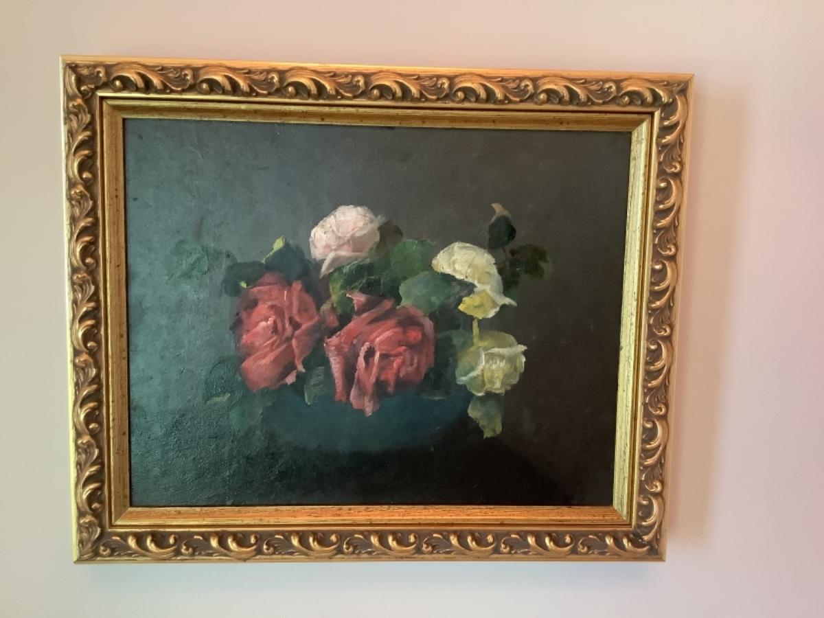 Artisan Signed Vintage Original Still Life Oil Painting on Board of Roses -