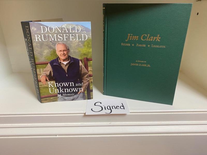 H - 899. Donald Rumsfeld & Jim Clark Signed Book Lot