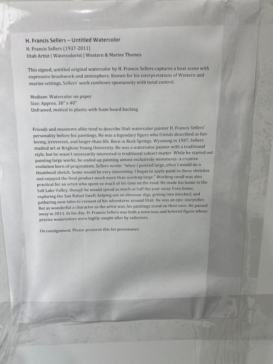 H. Francis Sellers 1937-2011 Untitled Water Color Boat "PATRICA"