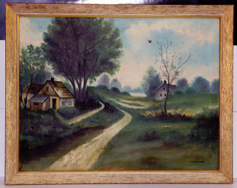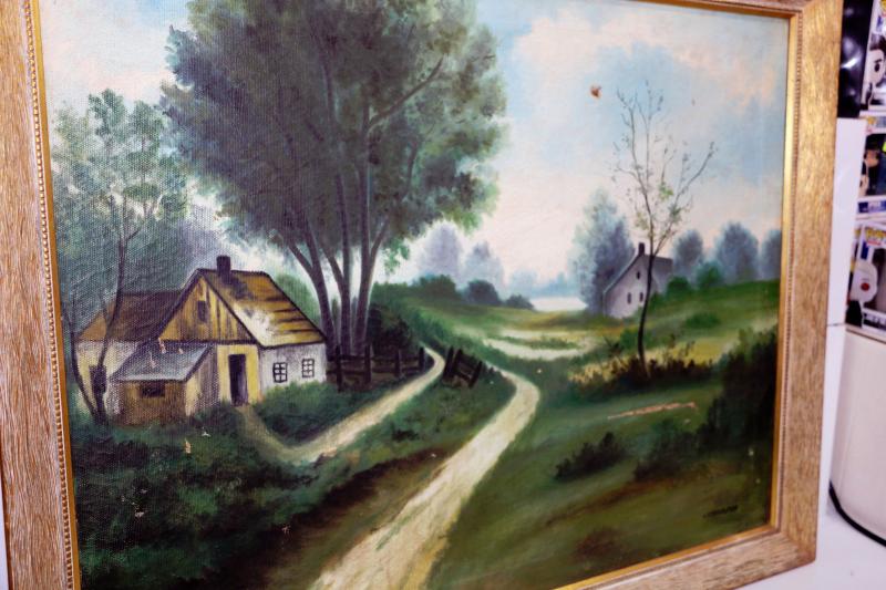 Painting has a few condition issues, few minor holes, as seen on pictures.