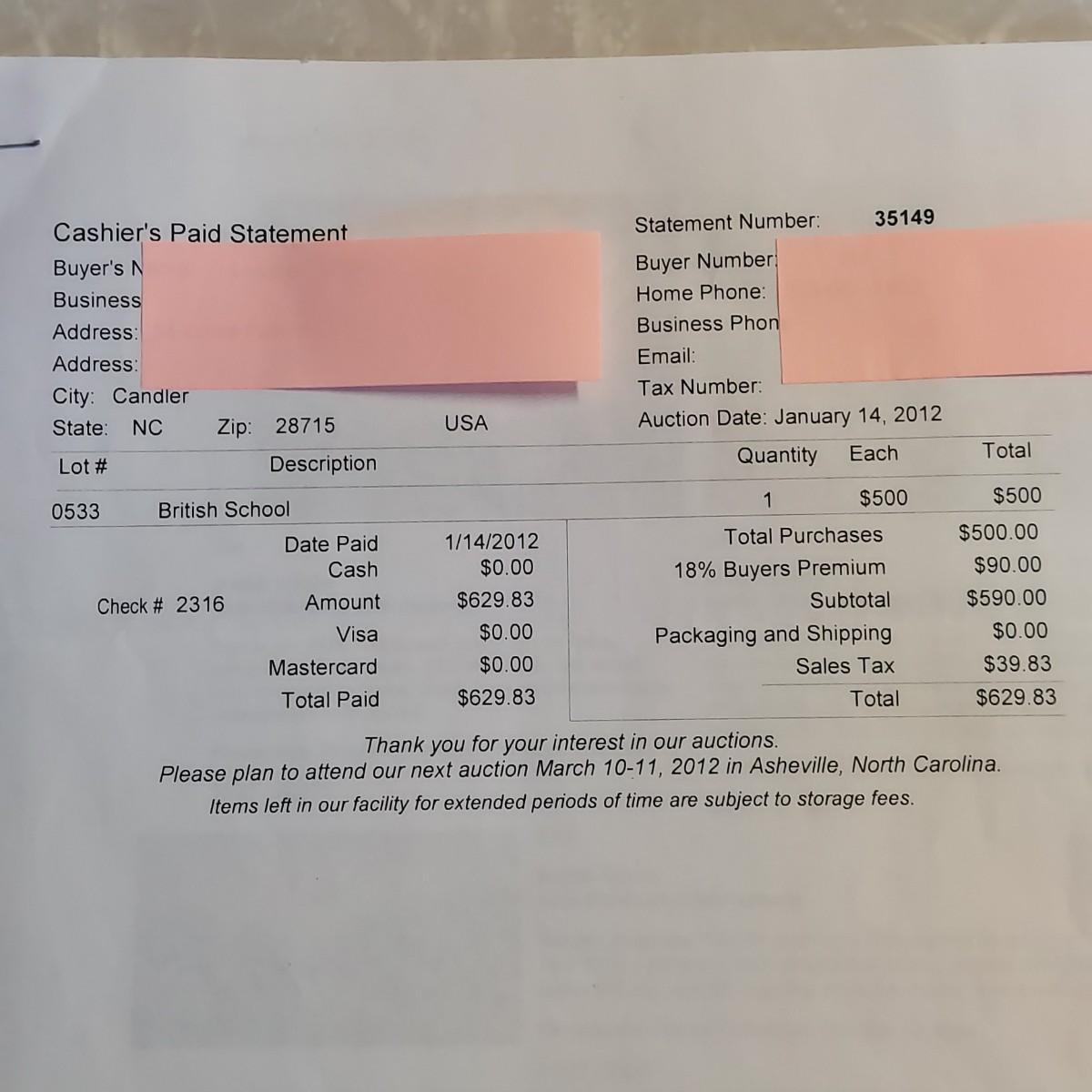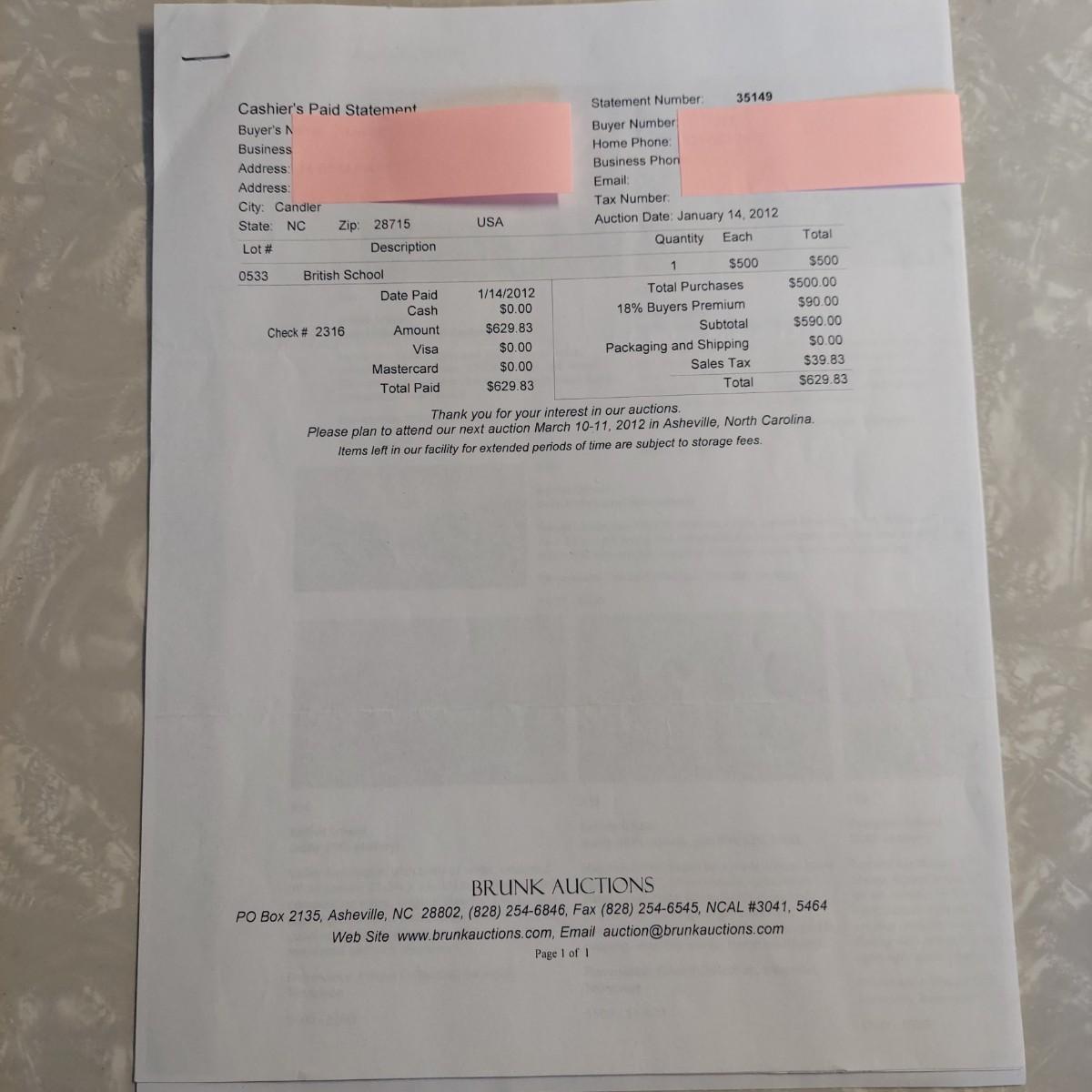 Shipping: Shipping is offered on select items in the sale. Please check individual descriptions. If you are interested in shipping, please note we use a shipping vendor called Postage Express which uses FedEx, UPS or USPS. Please contact them for a shipping estimate PRIOR to bidding. You will need to confirm your address, email address, and phone number after the auction ends and pay for your purchase. Once paid, your item will be picked up by Postage Express and they will contact you directly by telephone for shipping options and payment. Items may not be left at Postage Express for longer than a week or they will be donated with no refund. We do not offer refunds if the cost of shipping is higher than anticipated. Call before bidding to get a quote. Call them directly for updates on shipments. Their phone number is 828-255-9250 or shipping@postageexpressnc.com