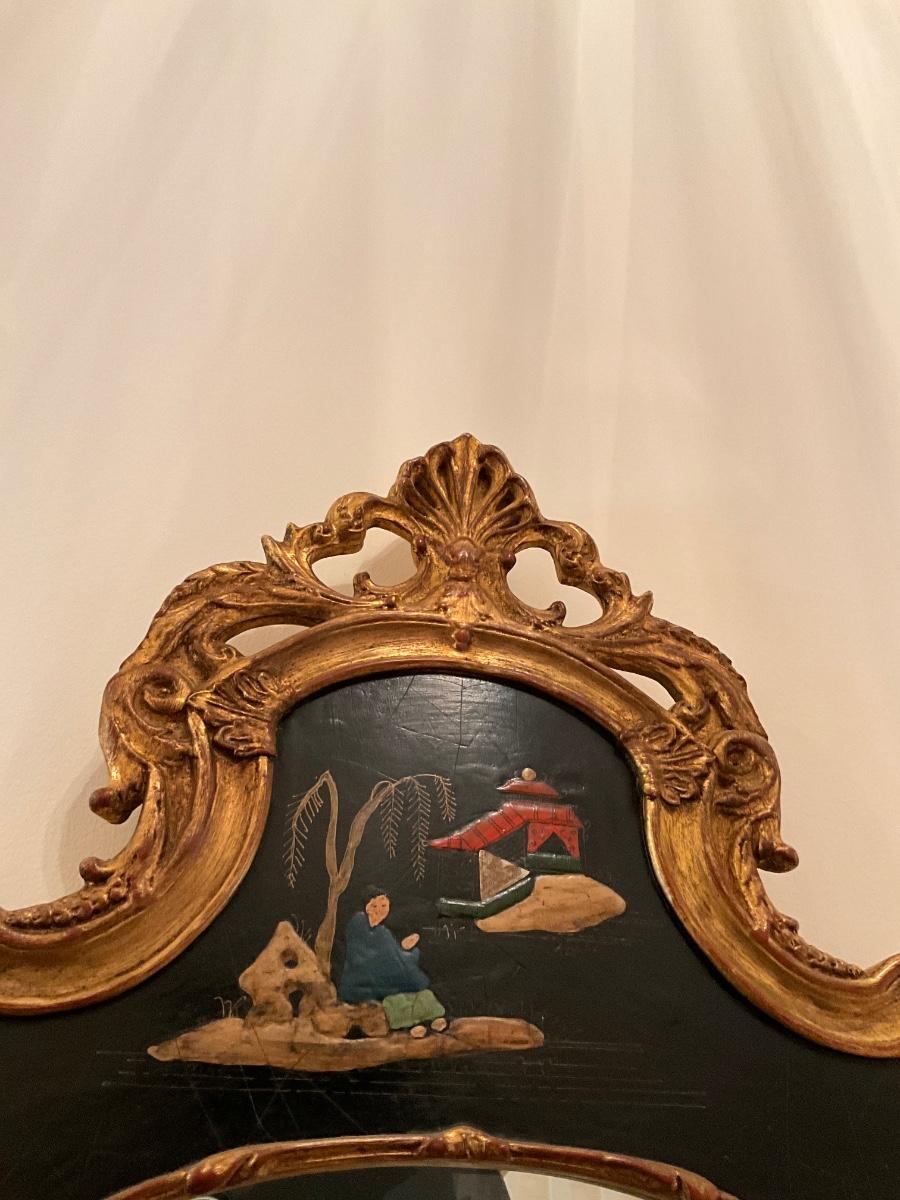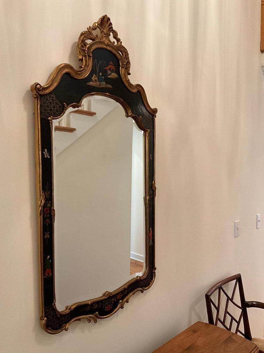 H1152 Carver's Guild Chinese Chinoiserie Black Beveled Mirror