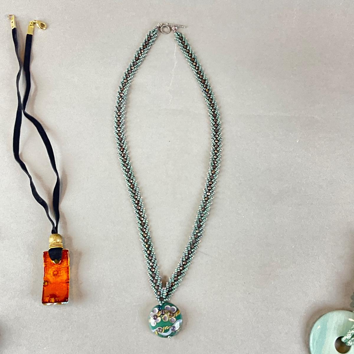 H1326 Lot of Dichroic Glass Pendant, Necklaces and Beaded Jewelry