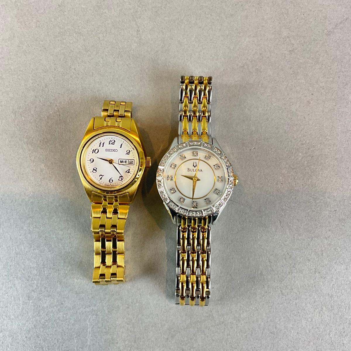 H1328 Ladies Bulova Crystal Two tone Womens Watch with Seiko Goldtone