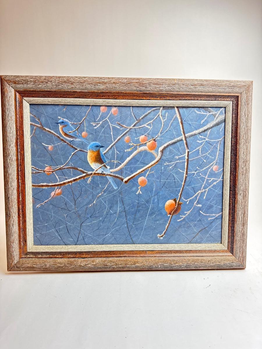 H485 Original Oil on Board with Blue Bird by Daniel Ambrose