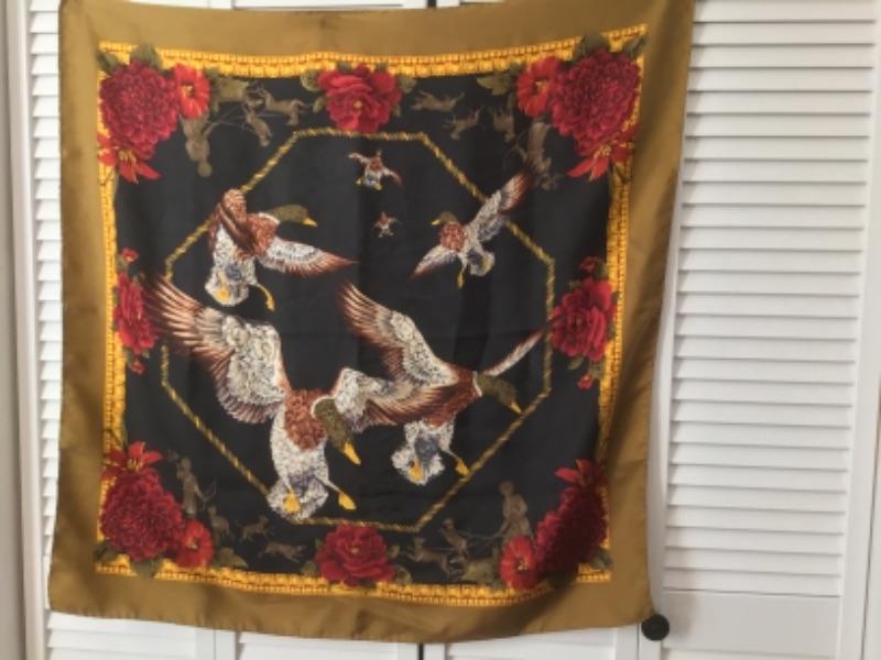 H - 681 Vintage Salvatore Ferragamo Silk Waterfowl Scarf