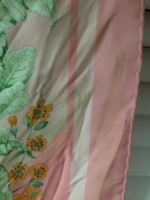 No handset garment tag but it is hand rolled some small stains please see pictures 34” x 34”