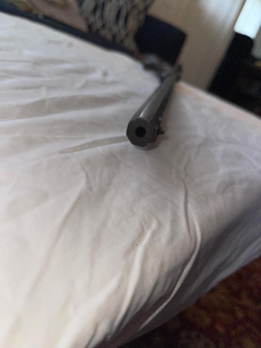 Overall Condition: This gun retains about 80% of its metal finish. of its metal finish. The balance of the finish shows some light surface erosion, pitting under the blue and wear from use and handling. The Screw heads are clean and very serviceable. Overall, this gun rates in about good condition.