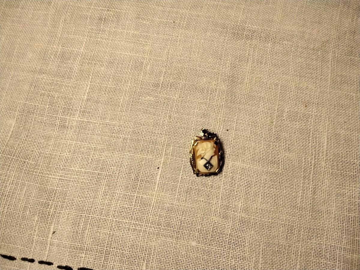 In the term, “cameo habille,” the French word “habille” means dressed. This means that cameo habille literally means “dressed cameo,” which is a reference to the detachable diamond or pearl element. Cameo habilles have a rich history. They can be founded dating back to the Renaissance time period. She is stunning wearing a gorgeous diamond and the bale is absolutely stunning! She tested 14k gold. .5"× ..75"