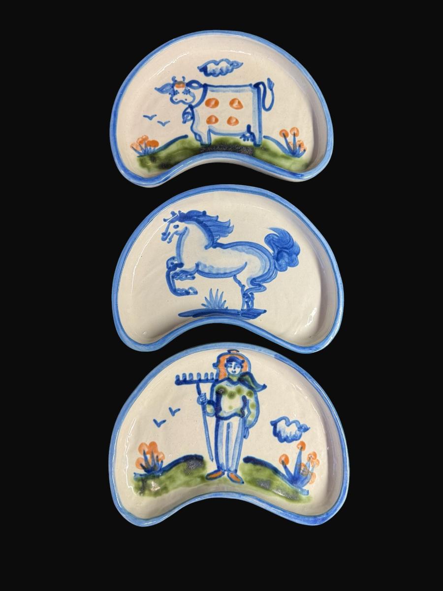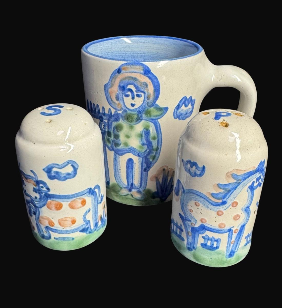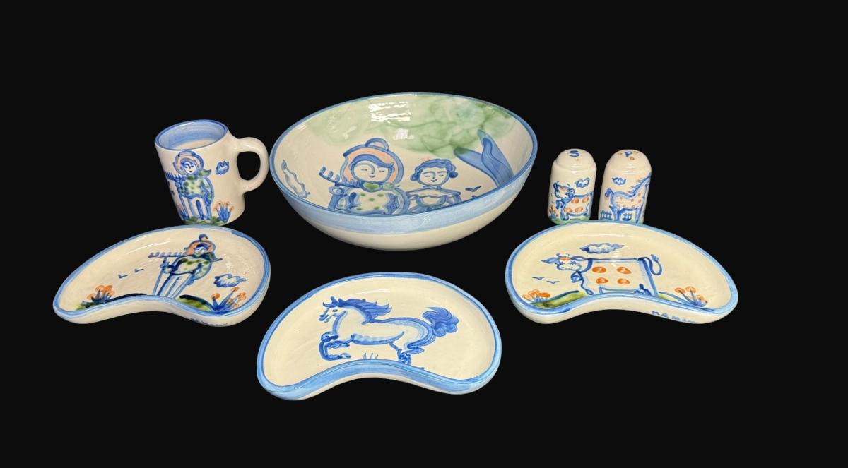 Includes a serving bowl, salad plates, salt and pepper, and a mug. Total of seven pieces. Country couple and other country scenes. [CS]