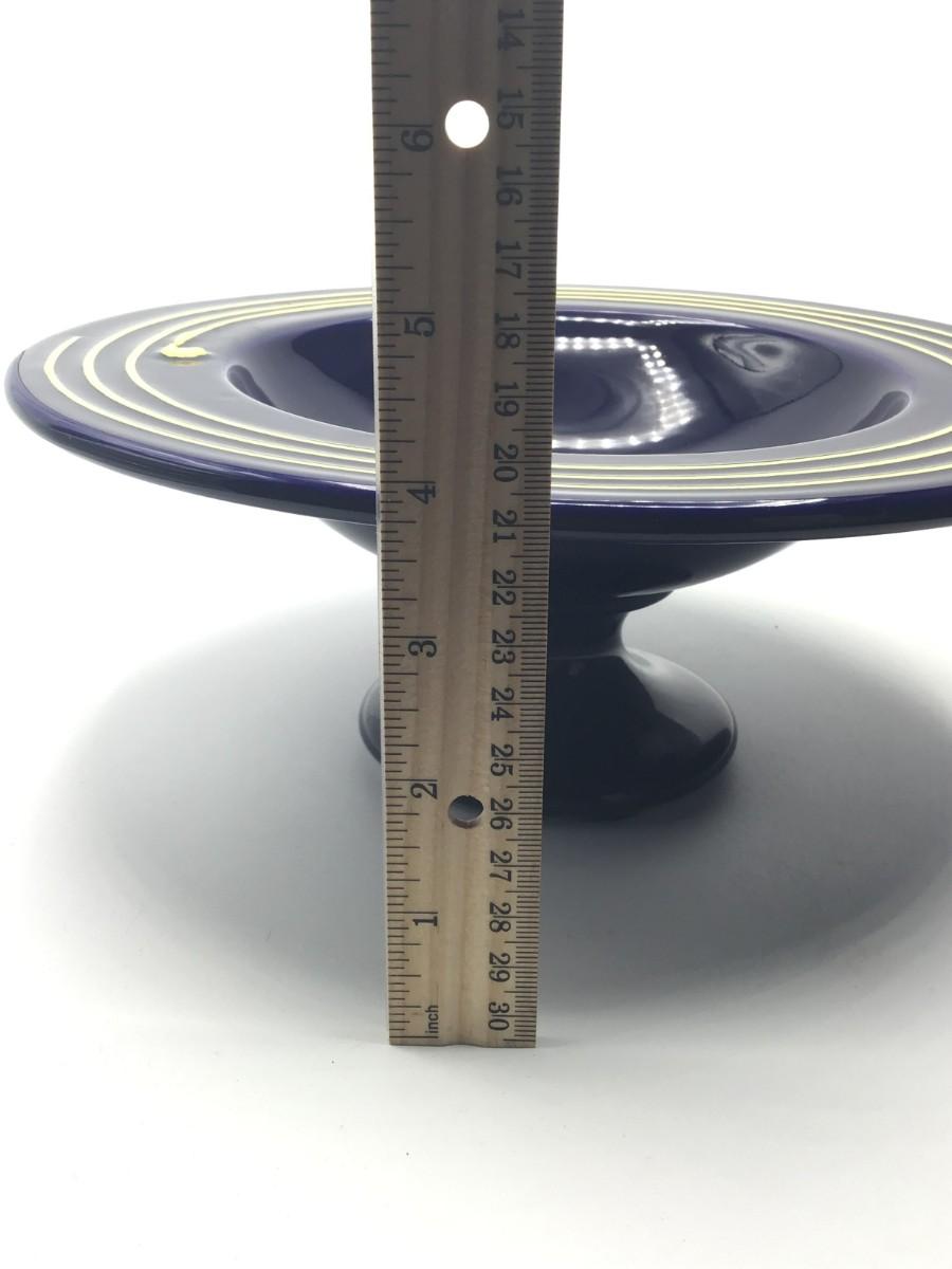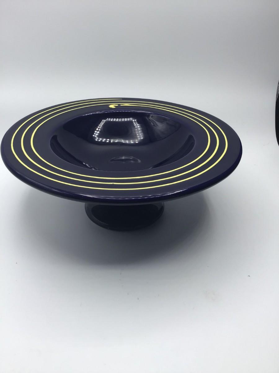Haeger Blue Pottery with Yellow Swirl Pedestal Bowl