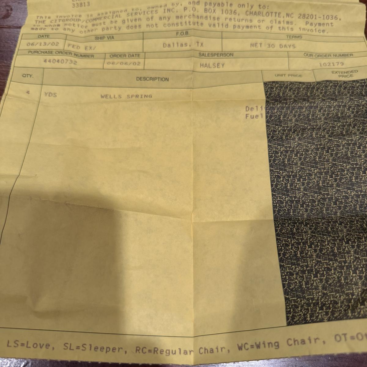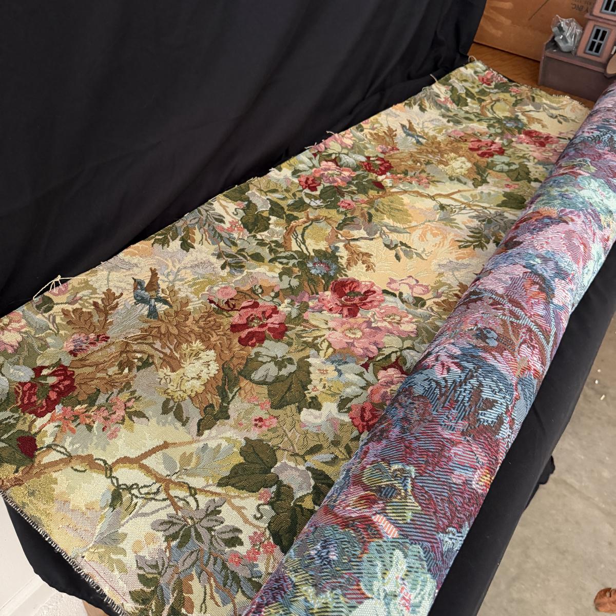 Lot includes a roll of fabric from Hagerty Furniture Company. Fabric measures 58”Wide.