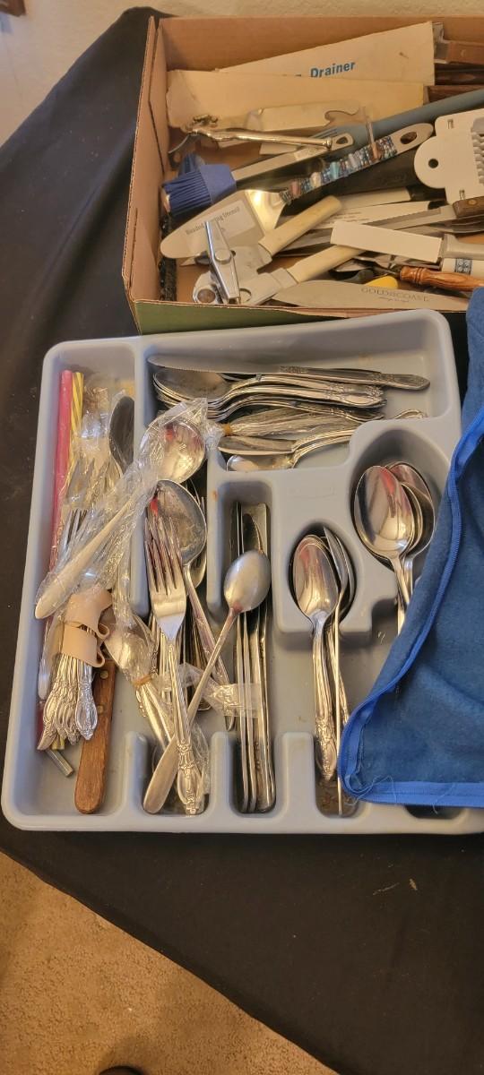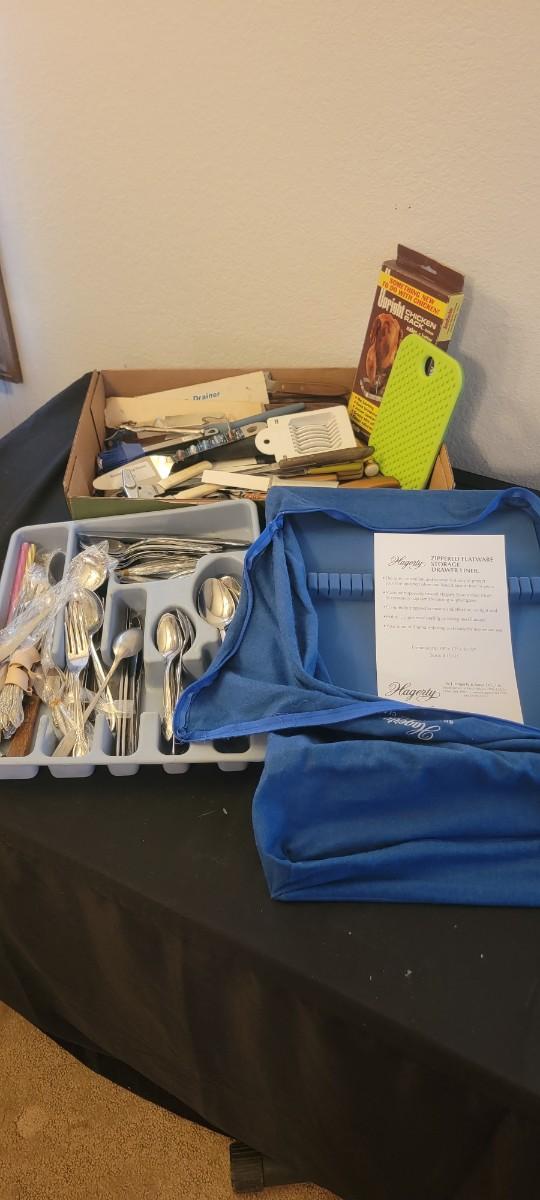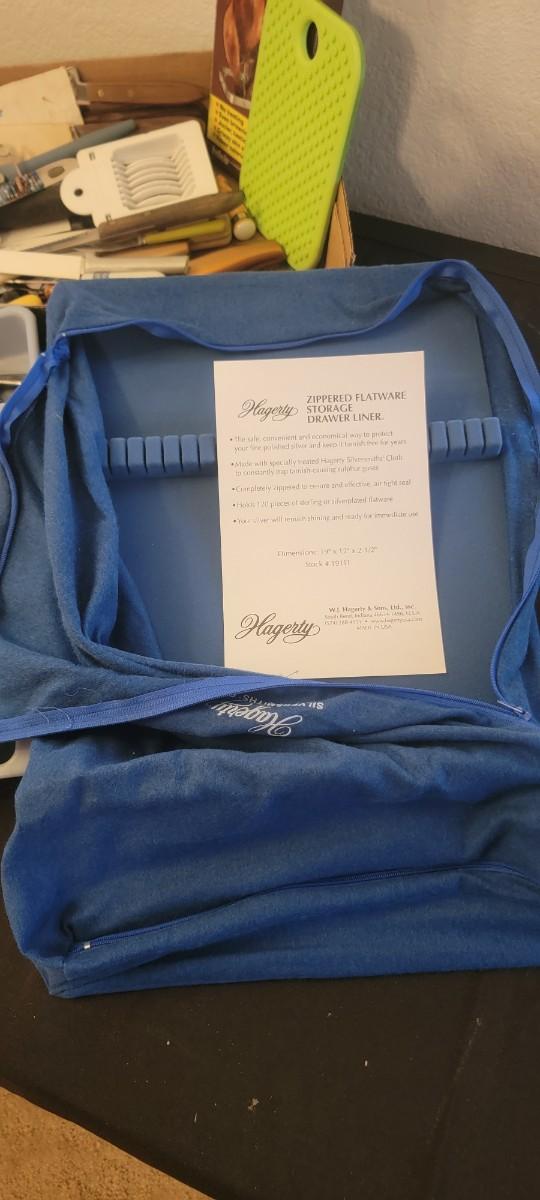 Hagerty zippered flatware storage drawer liner, assorted flatware and utensils