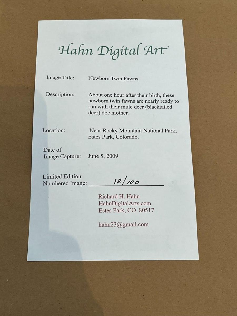 Hahn's Digital Arts: 3 Photo Framed Art- Black, Chocolate and Tan 61/250, Nurturing The Wide-Eyed Innocent 13/100, Newborn Twin Fawns 12/100