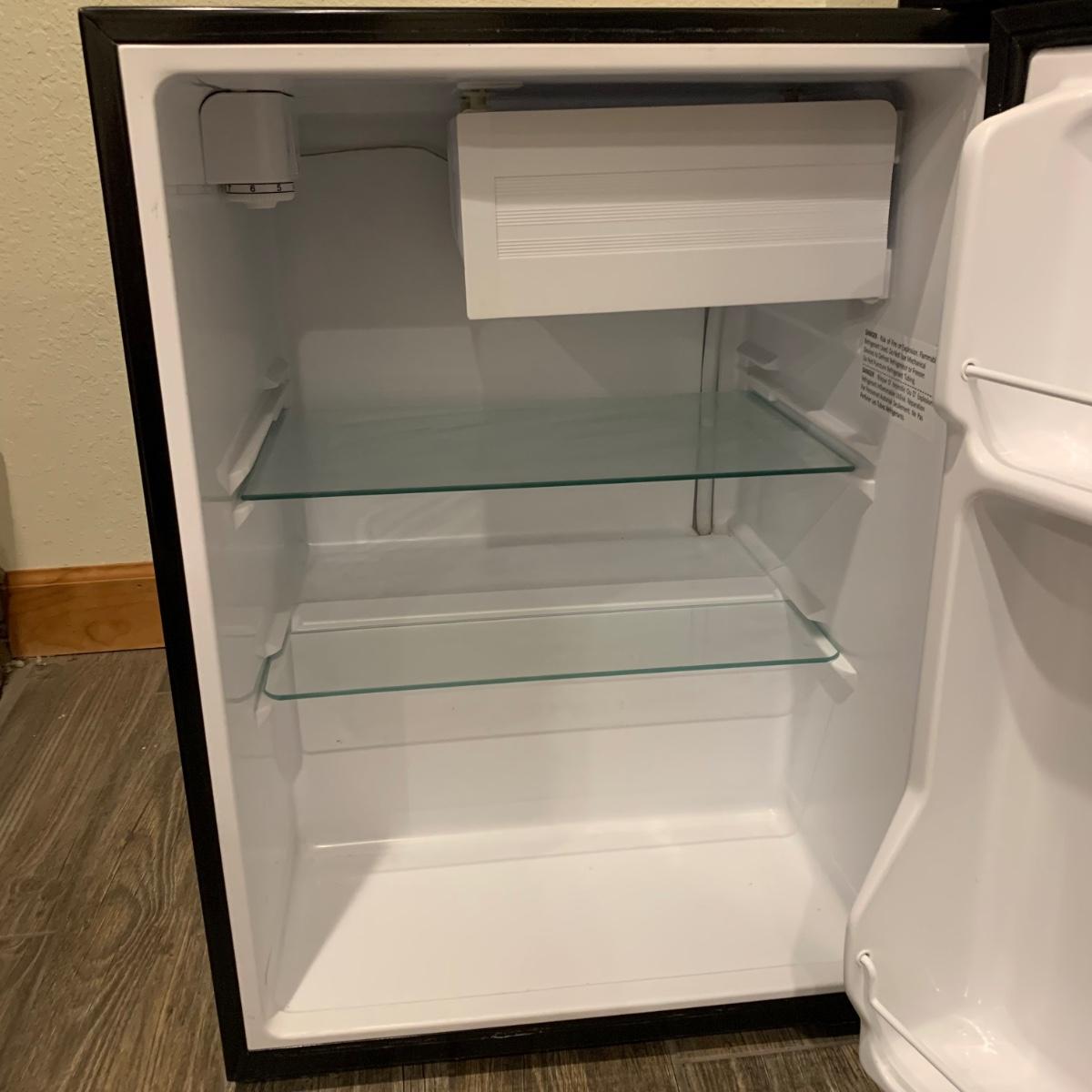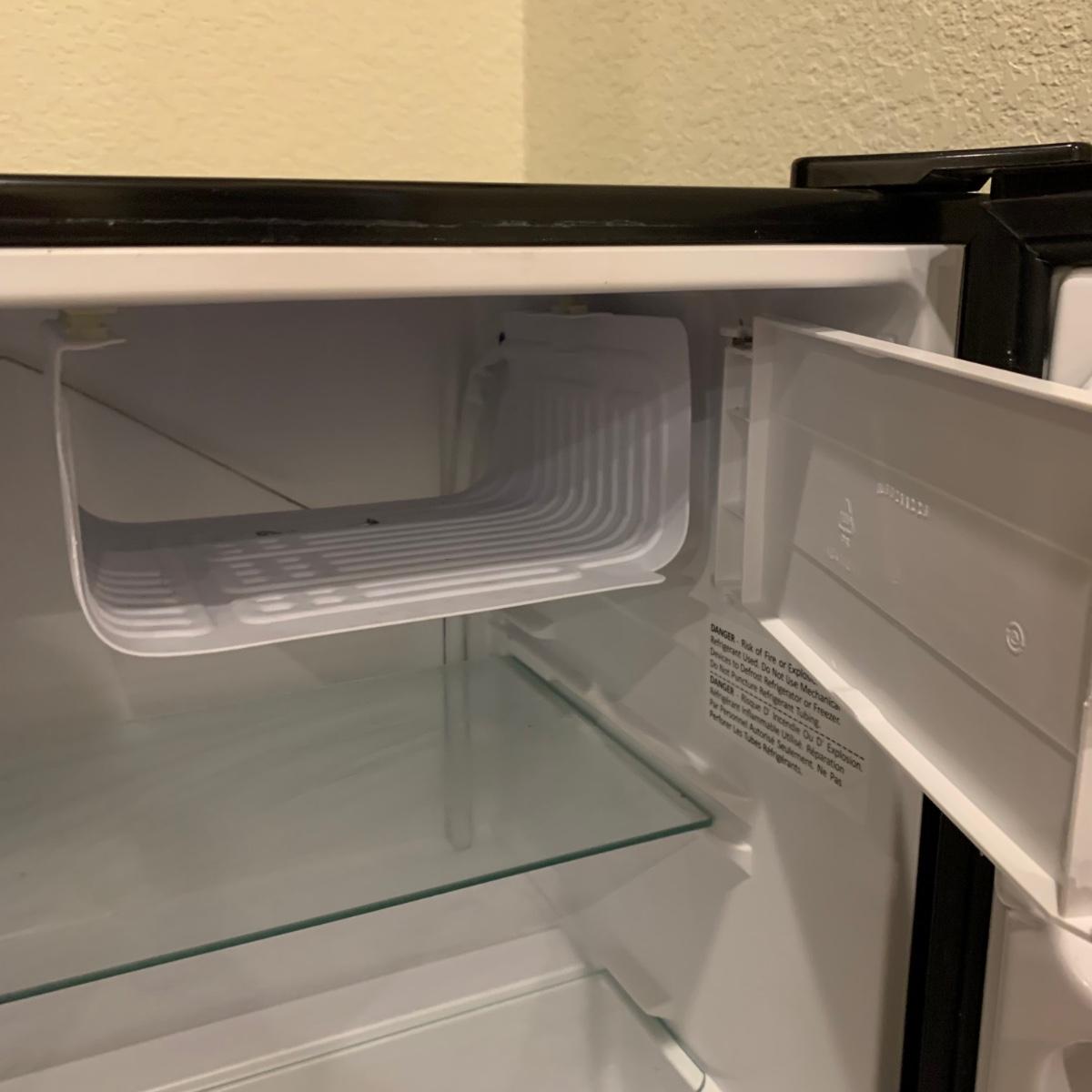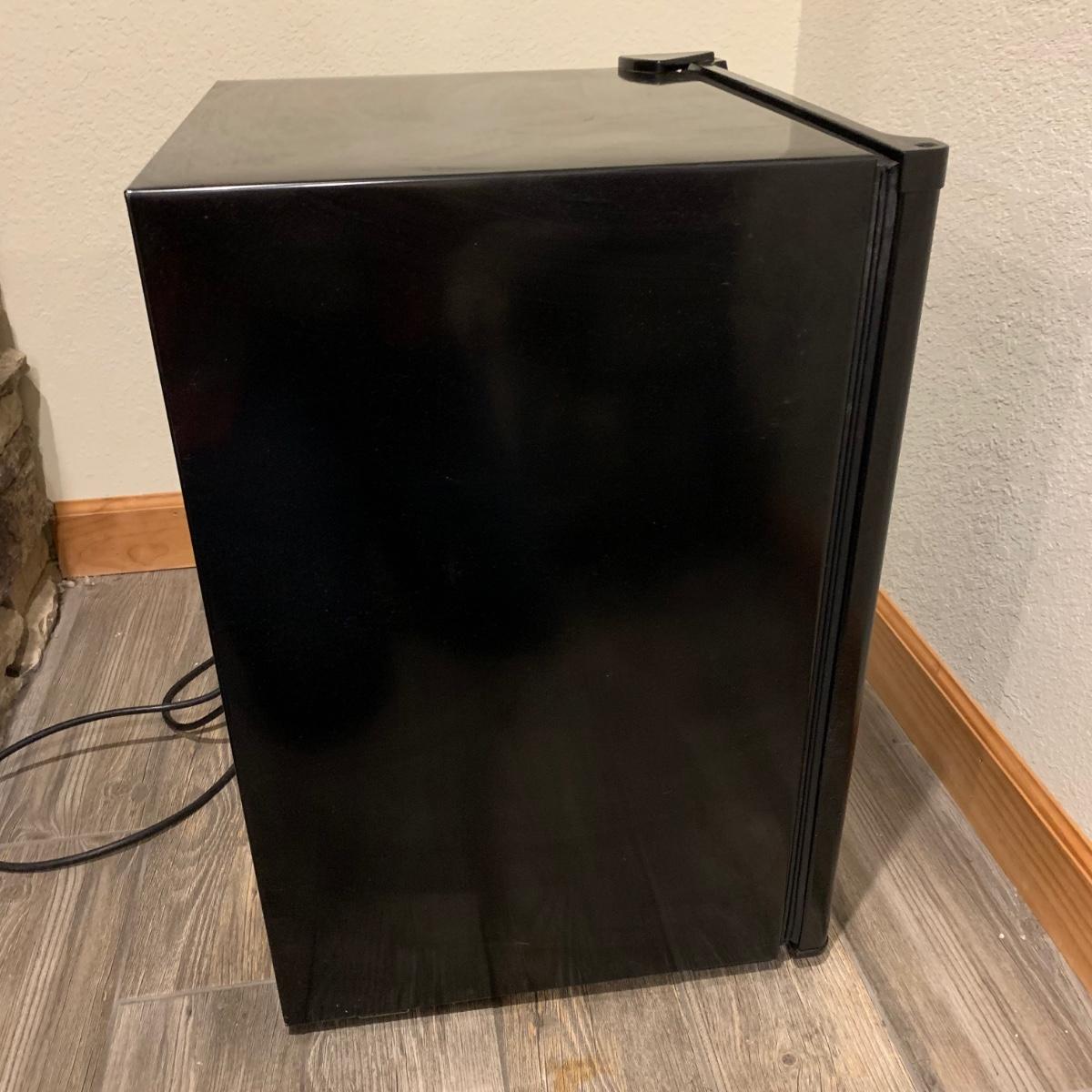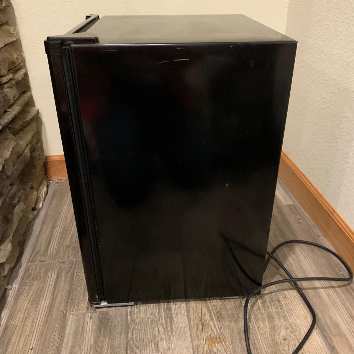 Haier 2.7 Cu. Ft. Household Refrigerator, Model HC27SG42RB. Measures 18.75” x 17.75” x 25.75”. Refrigerator functioned when tested and seems to be in good condition. Please note that this is a mini fridge, not a full sized fridge.