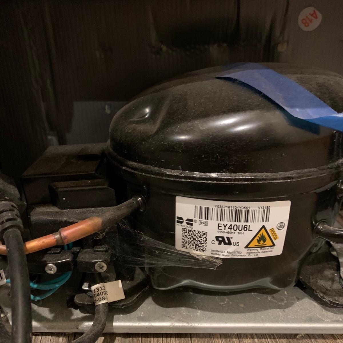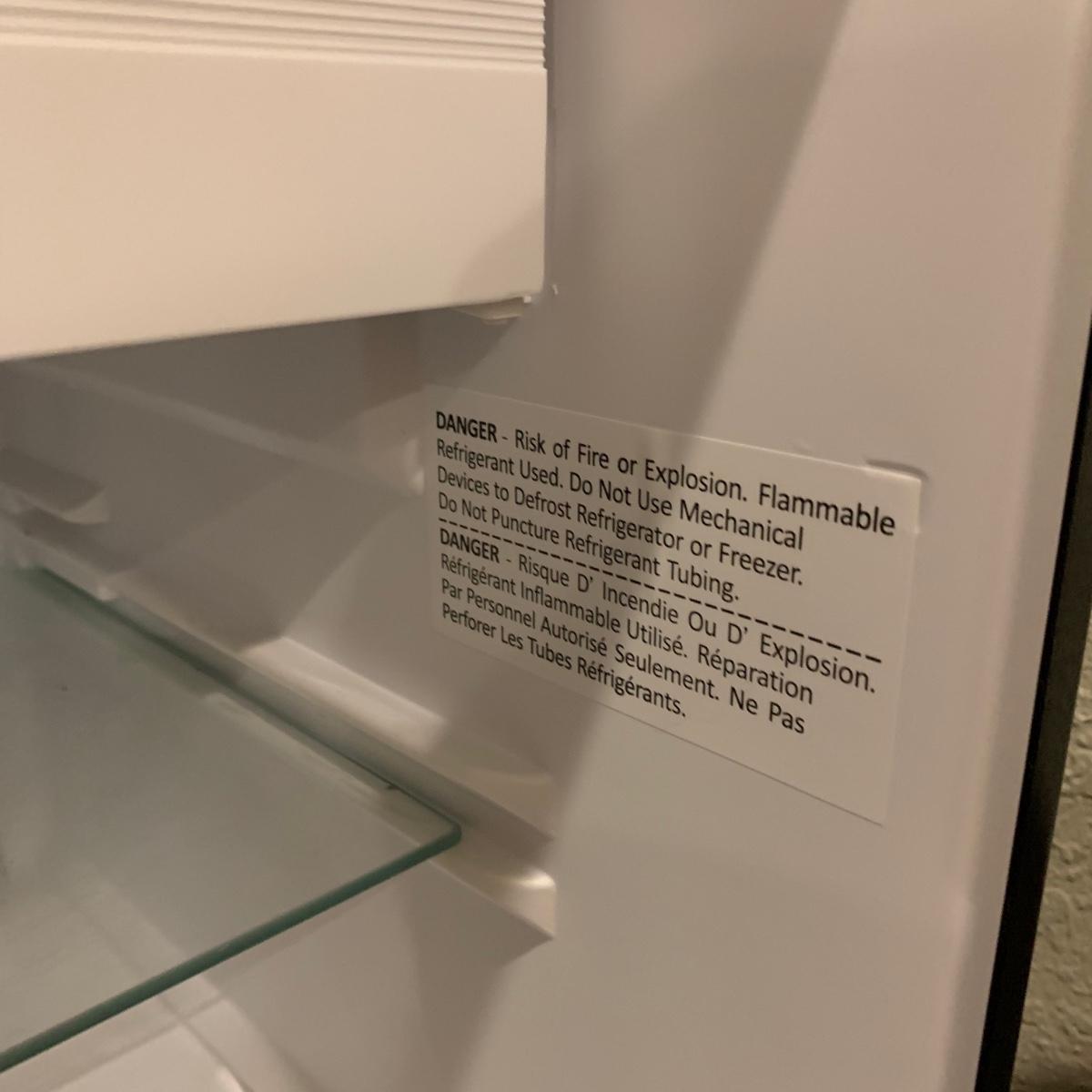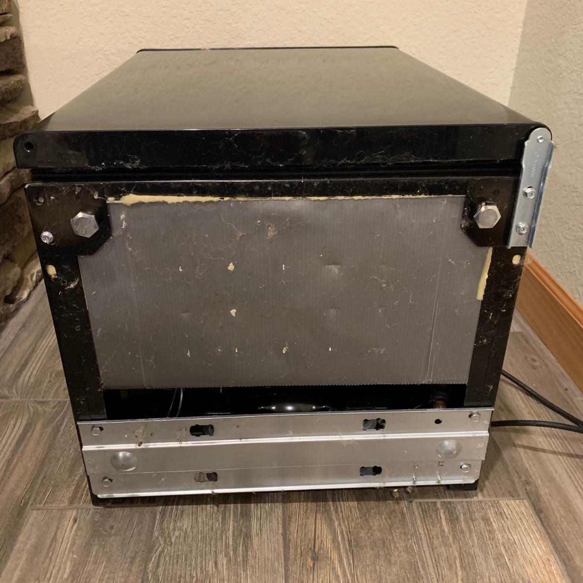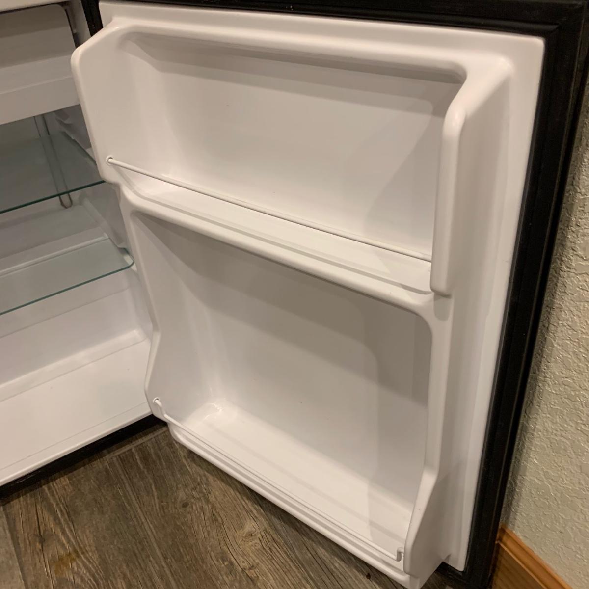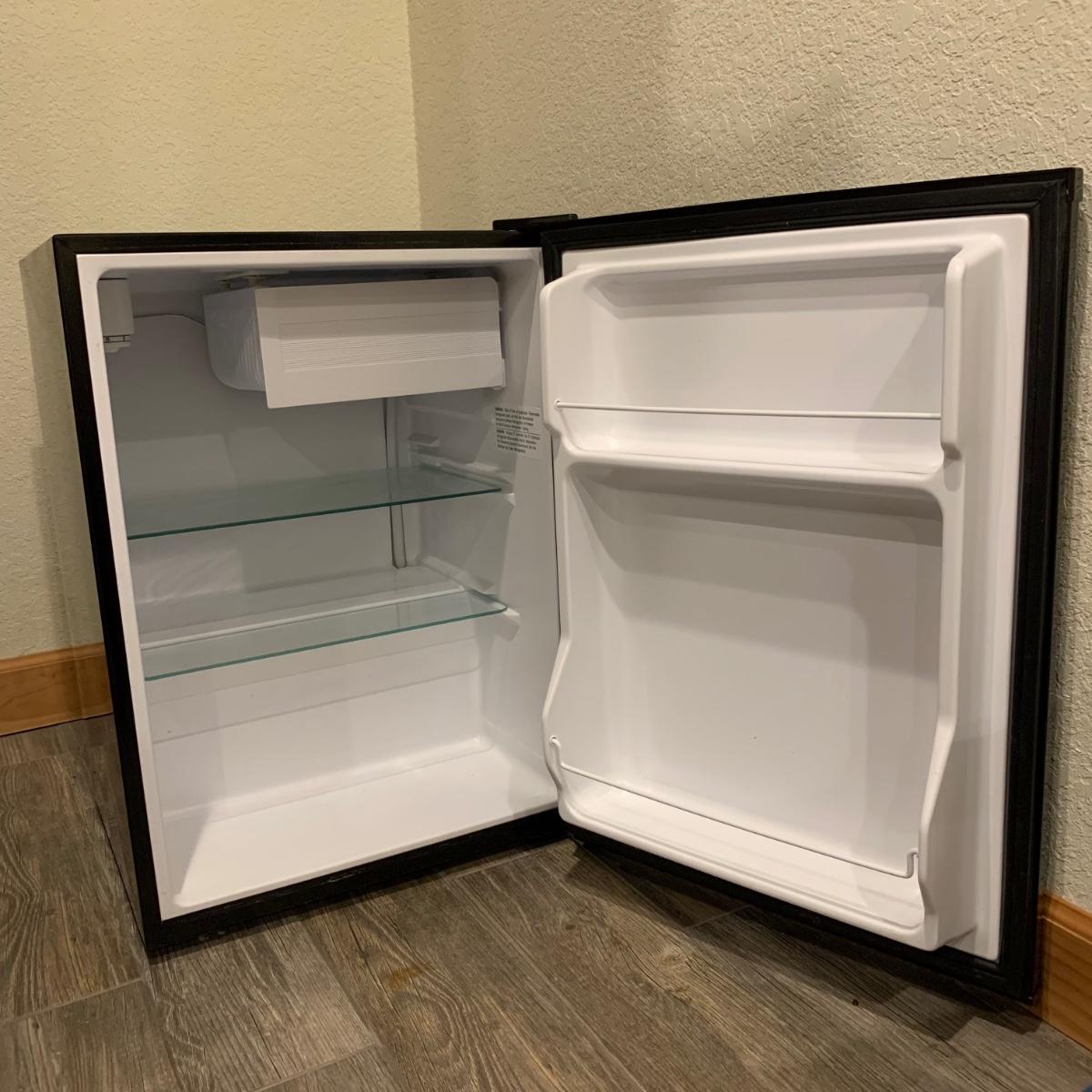 Haier 2.7 Cu. Ft. Household Refrigerator, Model HC27SG42RB. Measures 18.75” x 17.75” x 25.75”. Refrigerator functioned when tested and seems to be in good condition. Please note that this is a mini fridge, not a full sized fridge.
