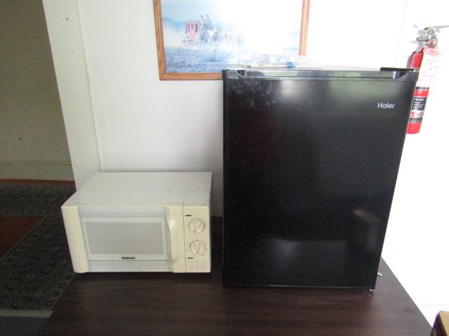 Haier Dorm Refrigerator and Microwave Appliances (O) appear to be in working condition