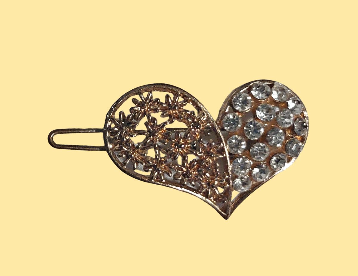 4. 1 - Heart Shaped Gold Tone/Rhinestone Barrette
