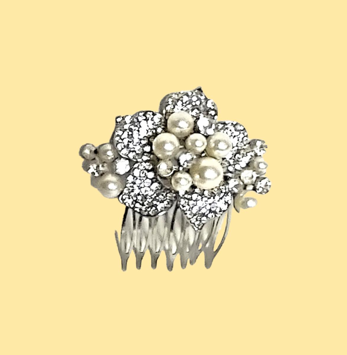 2. 1 - 3" Silver Tone Pearl/Rhinstone Hair Comb