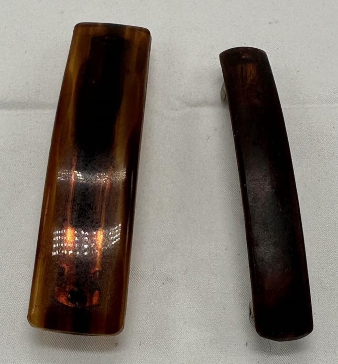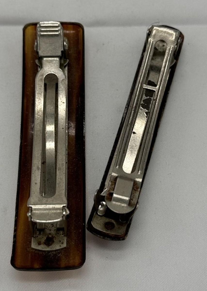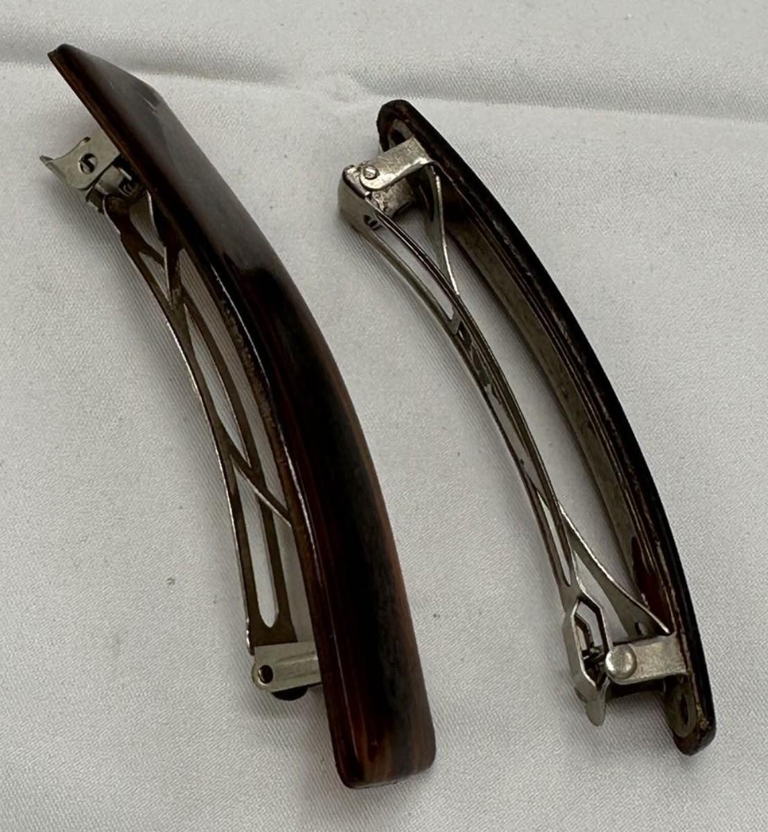 Hair Barrette Metal Clip Women Tortoise Brown Long Thin Rectangle Made in France