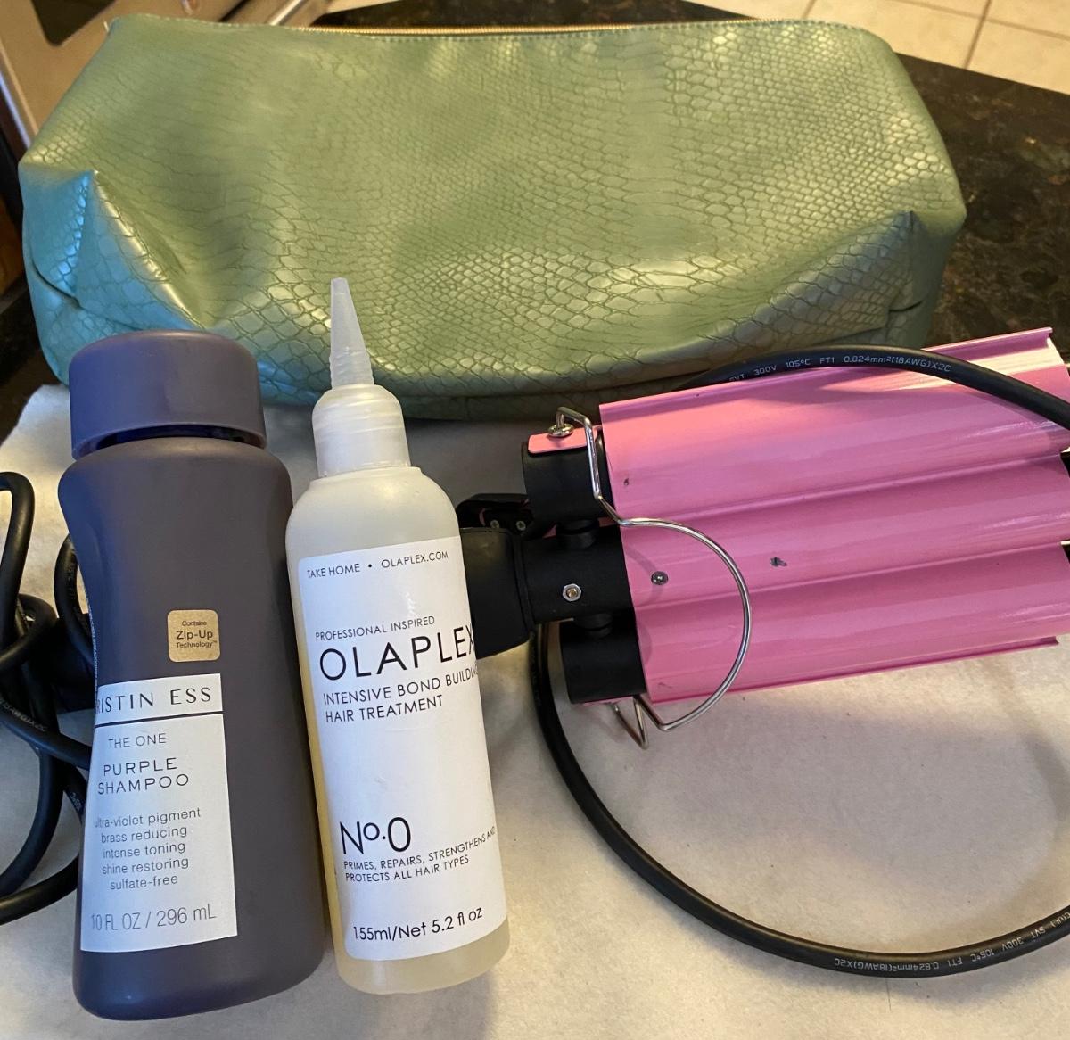 Olaplex intensive bond building hair treatment, Kristin Ess purple shampoo,