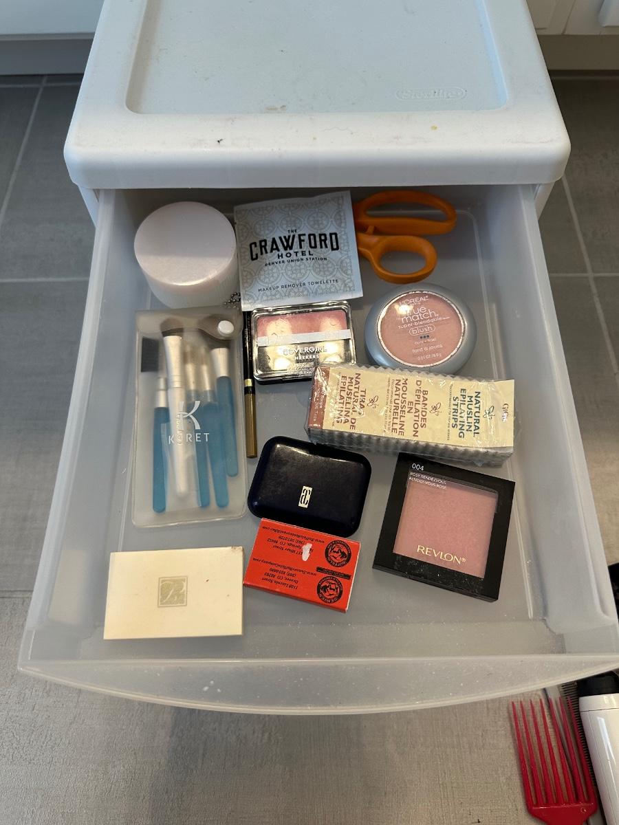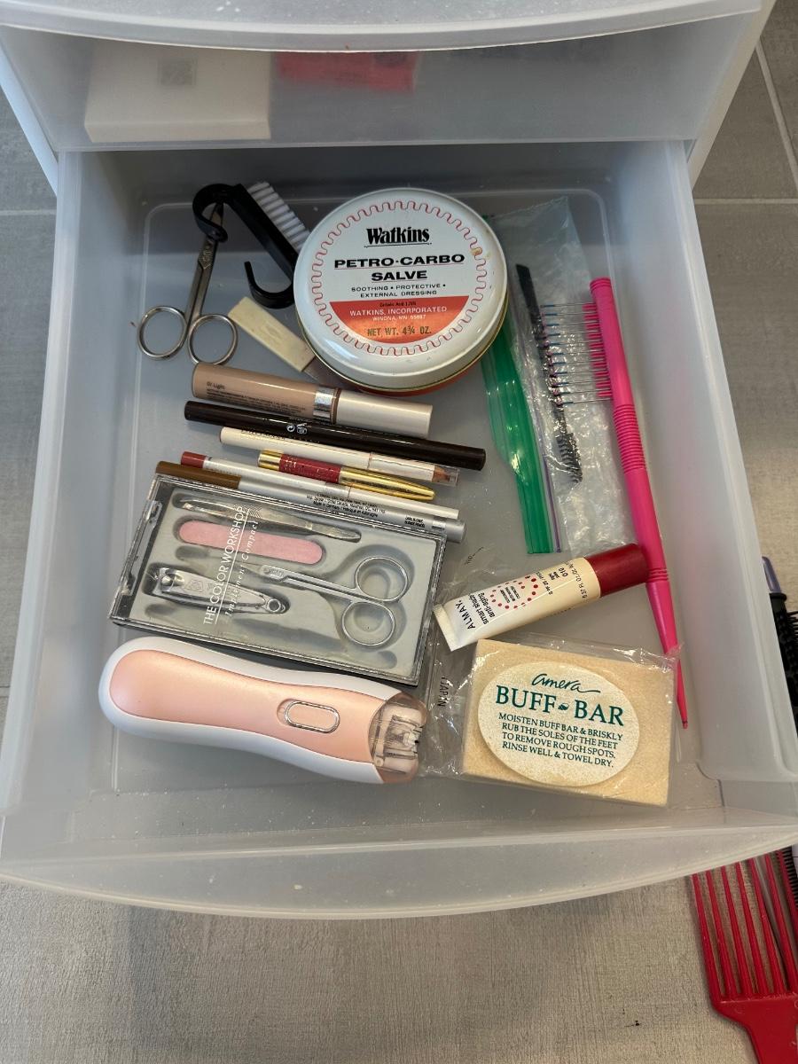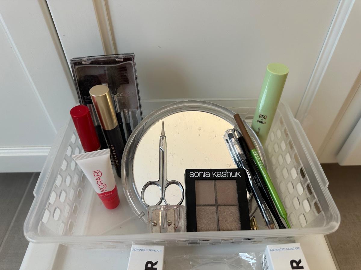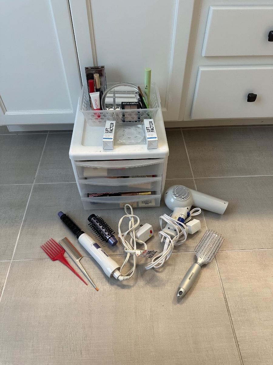 HAIR CARE WITH STORAGE BIN OF MAKEUP