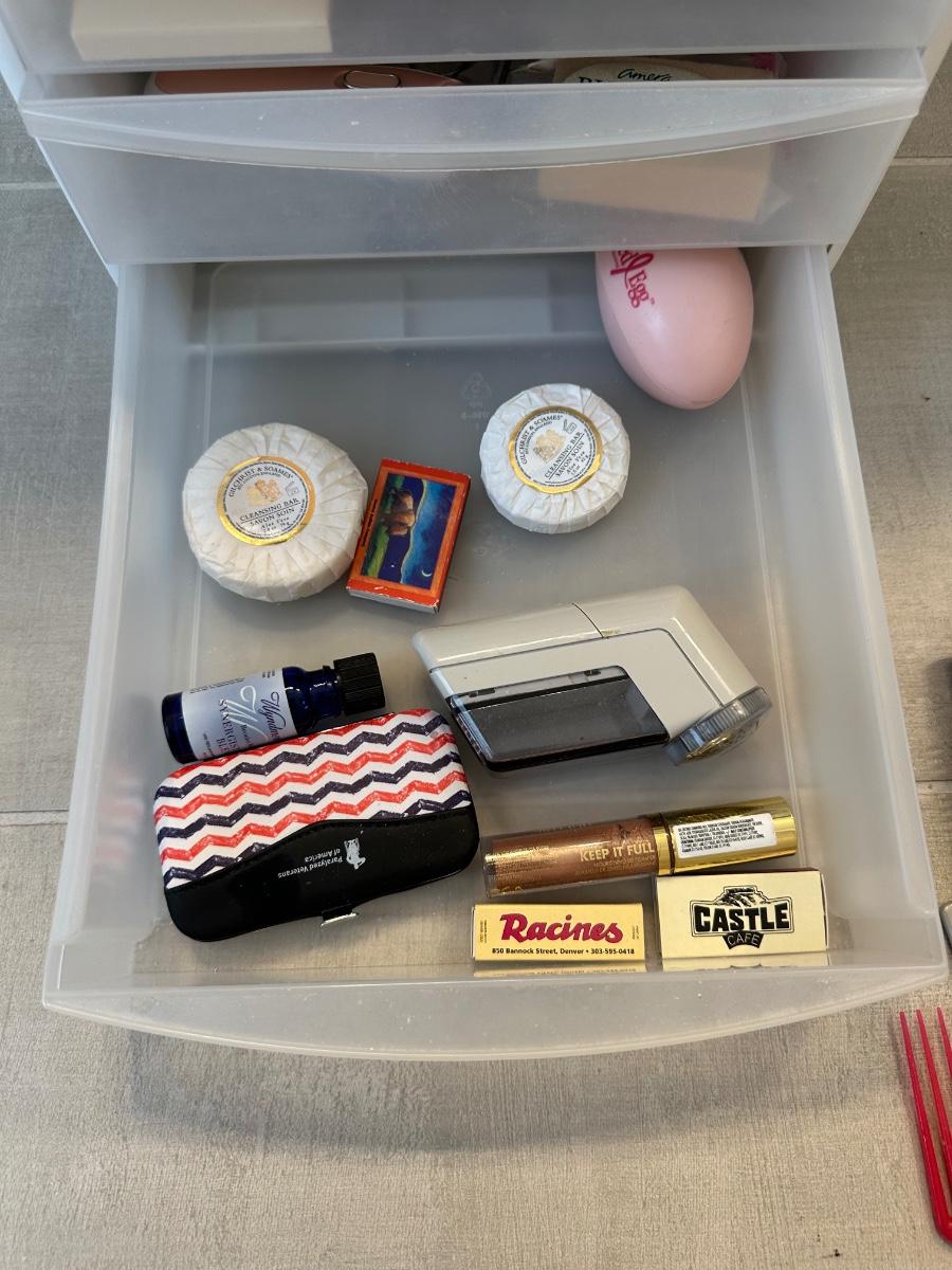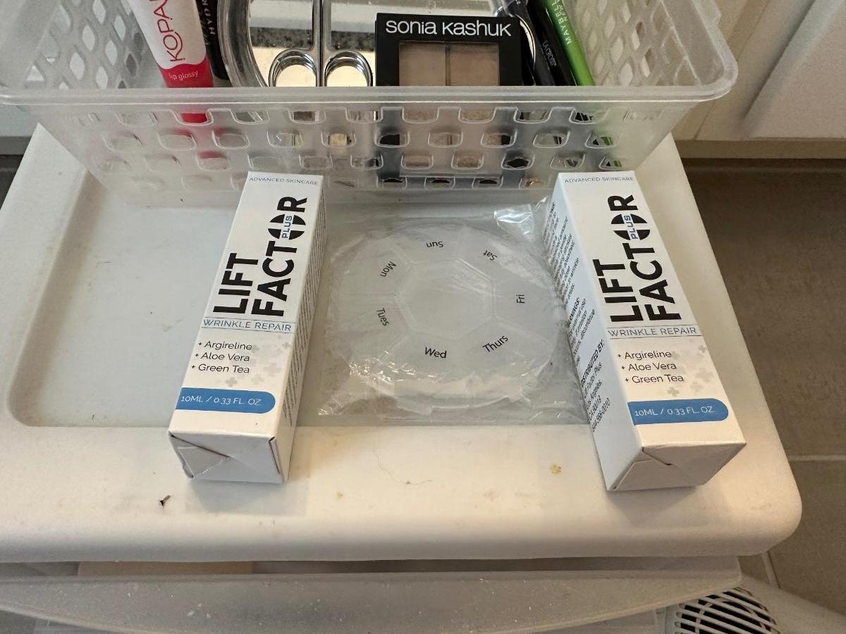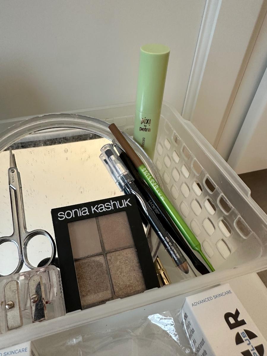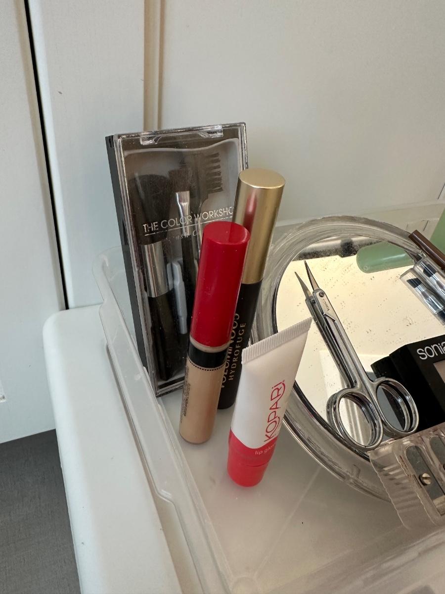 HAIR CARE WITH STORAGE BIN OF MAKEUP