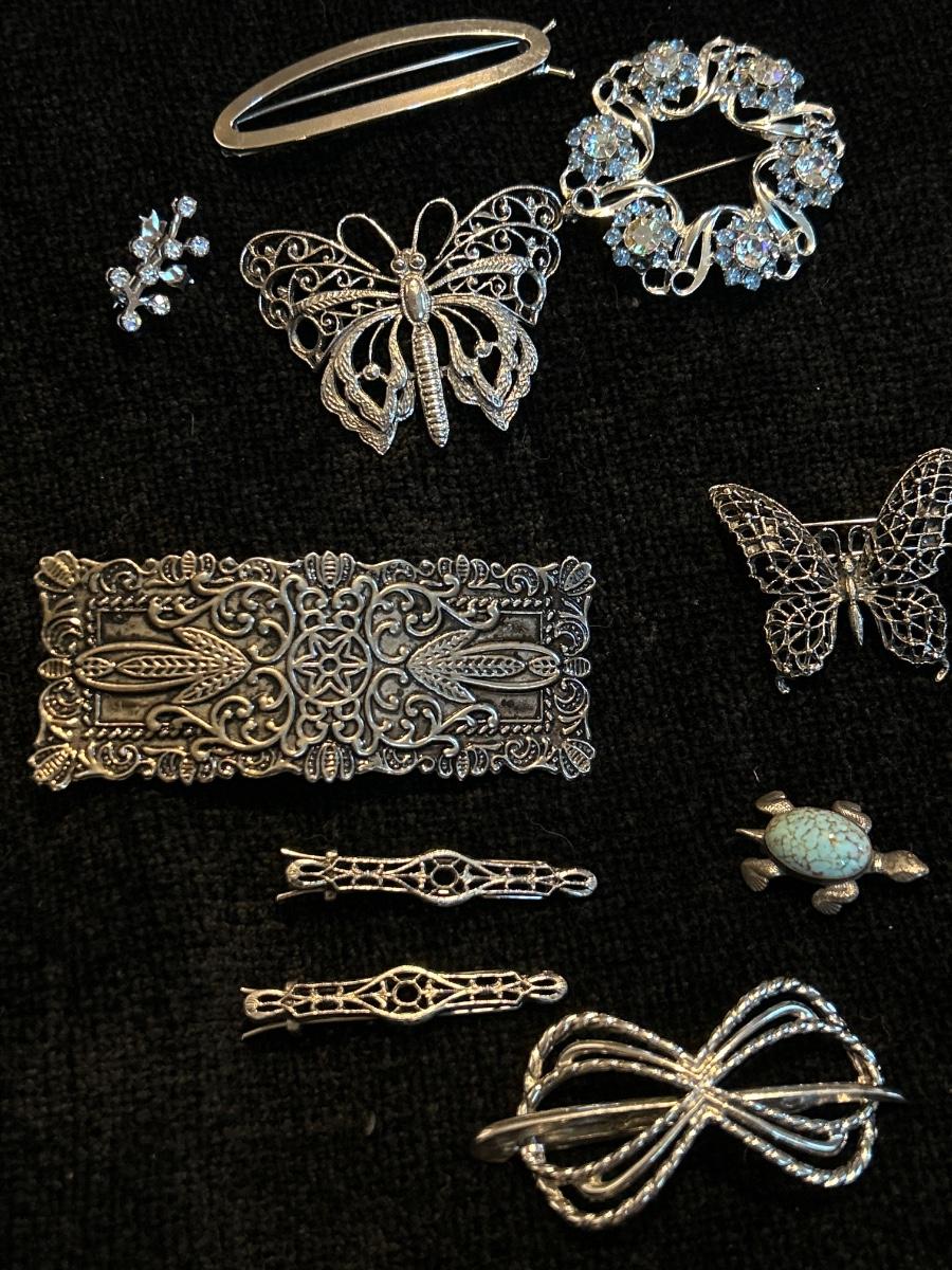 Vintage hair clips/pins & brooches, the large butterfly is broken.