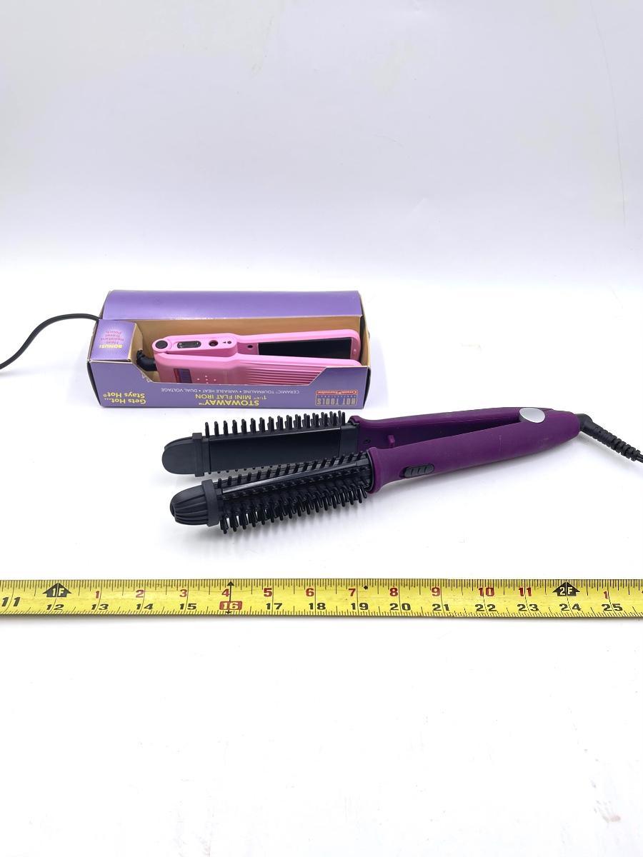Includes 1 1/4” mini straightener and 3-in-1 curler & flat iron. Both tested and turn on. **The dial on the pink flat iron appears to be missing (see pictures)**
