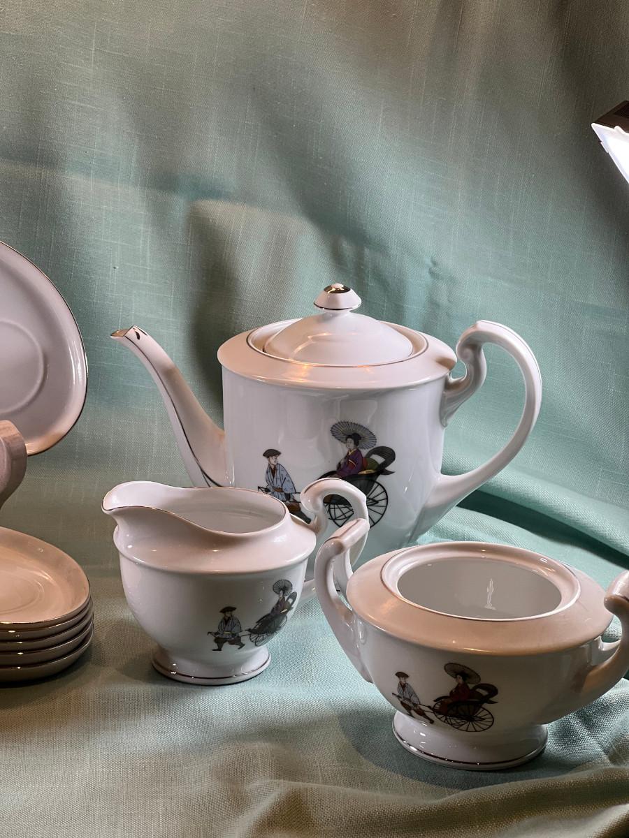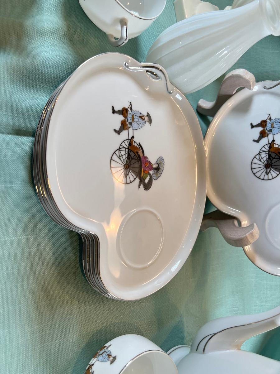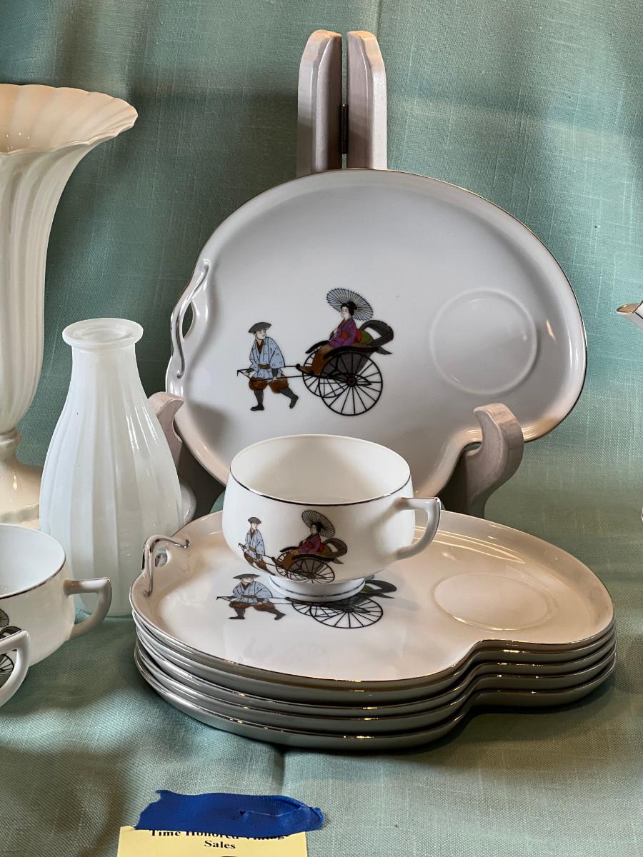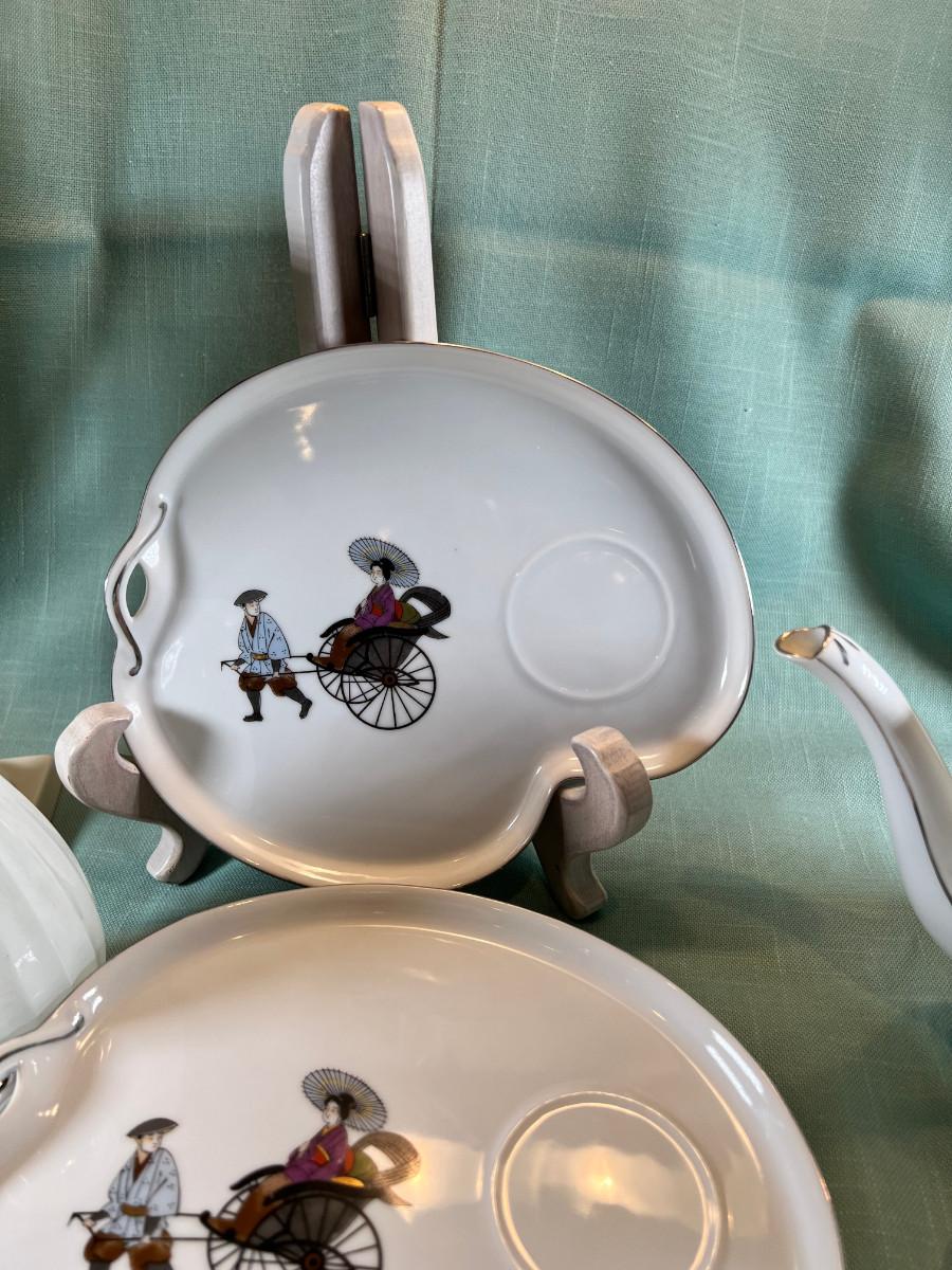 Vintage Hakusan Japan #9501 Rickshaw MCM  Fine Japanese Dessert plates