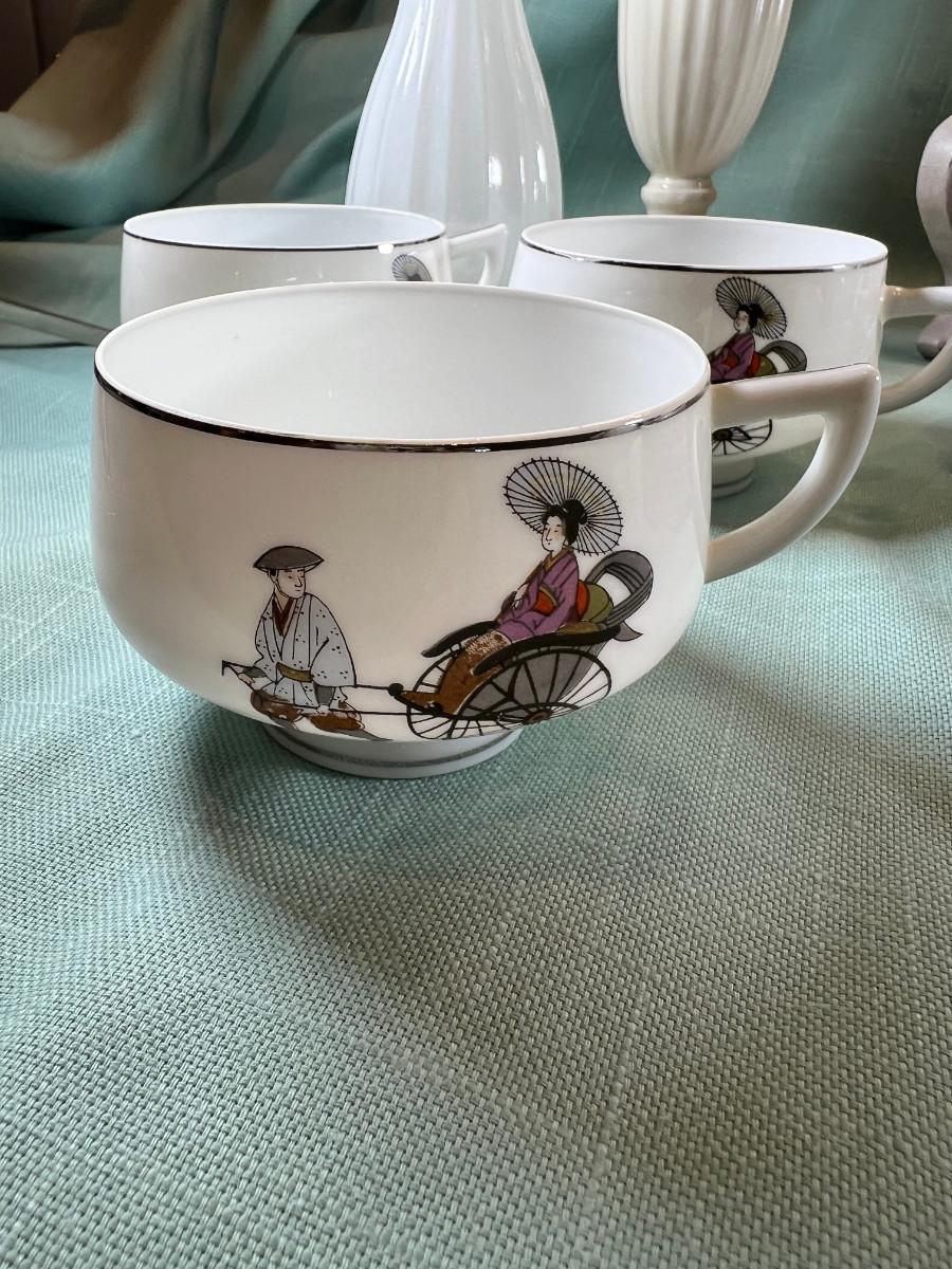 Vintage Hakusan Japan #9501 Rickshaw MCM Fine Japanese Dessert plates