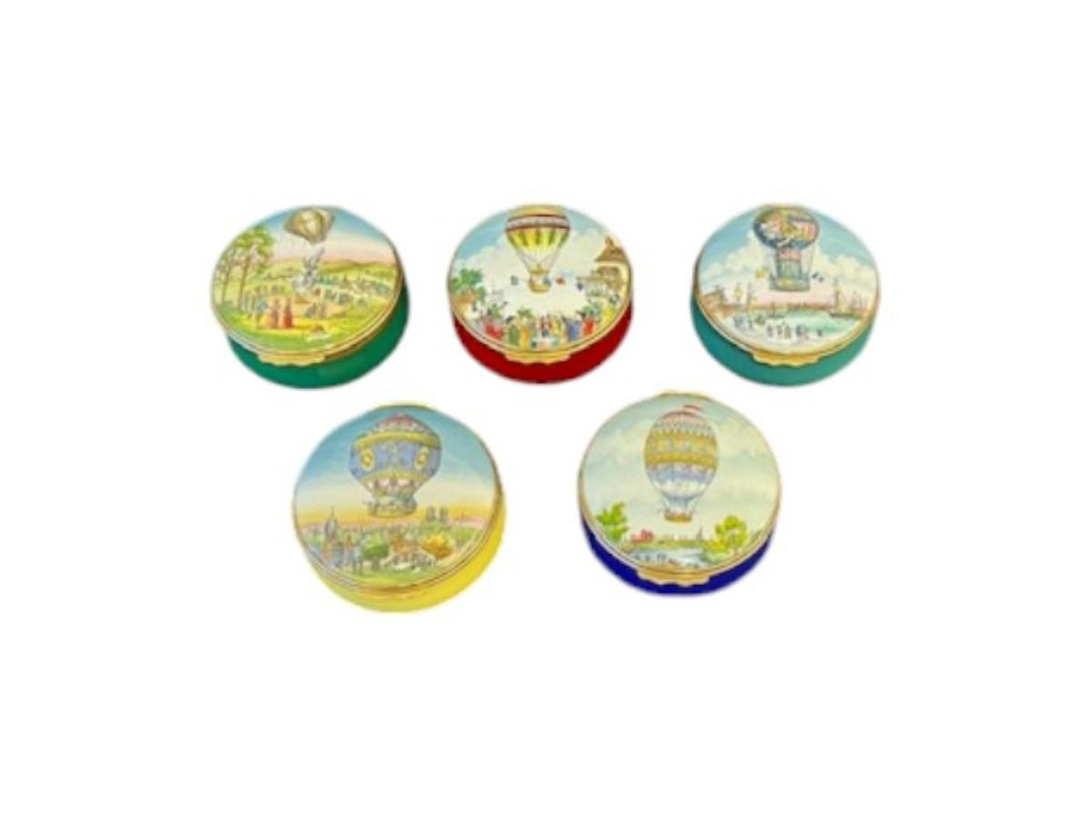 Hot air balloon assortment. Total of 5 pieces. Includes original boxes (not pictured). Measurement: 2.5" diameter (each). [BS]