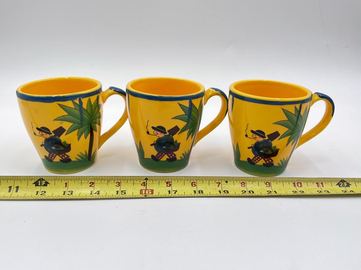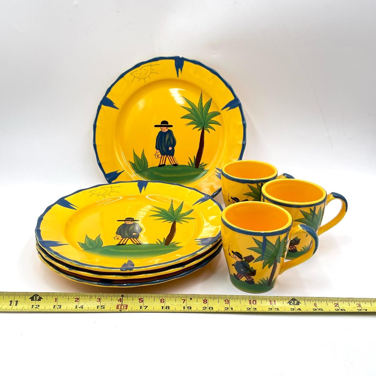 HALDON “SOLEIL” YELLOW AND BLUE PLATES AND CUPS SET OF 7