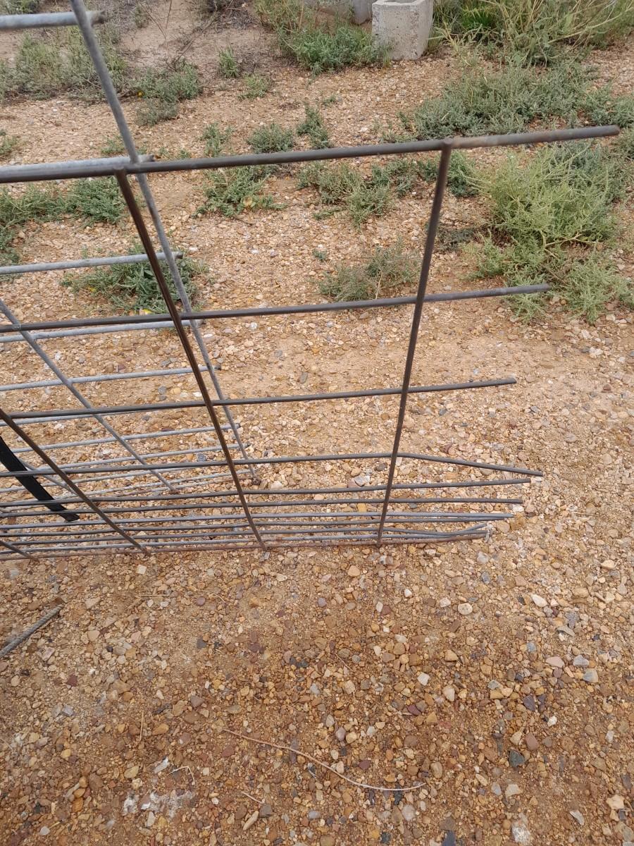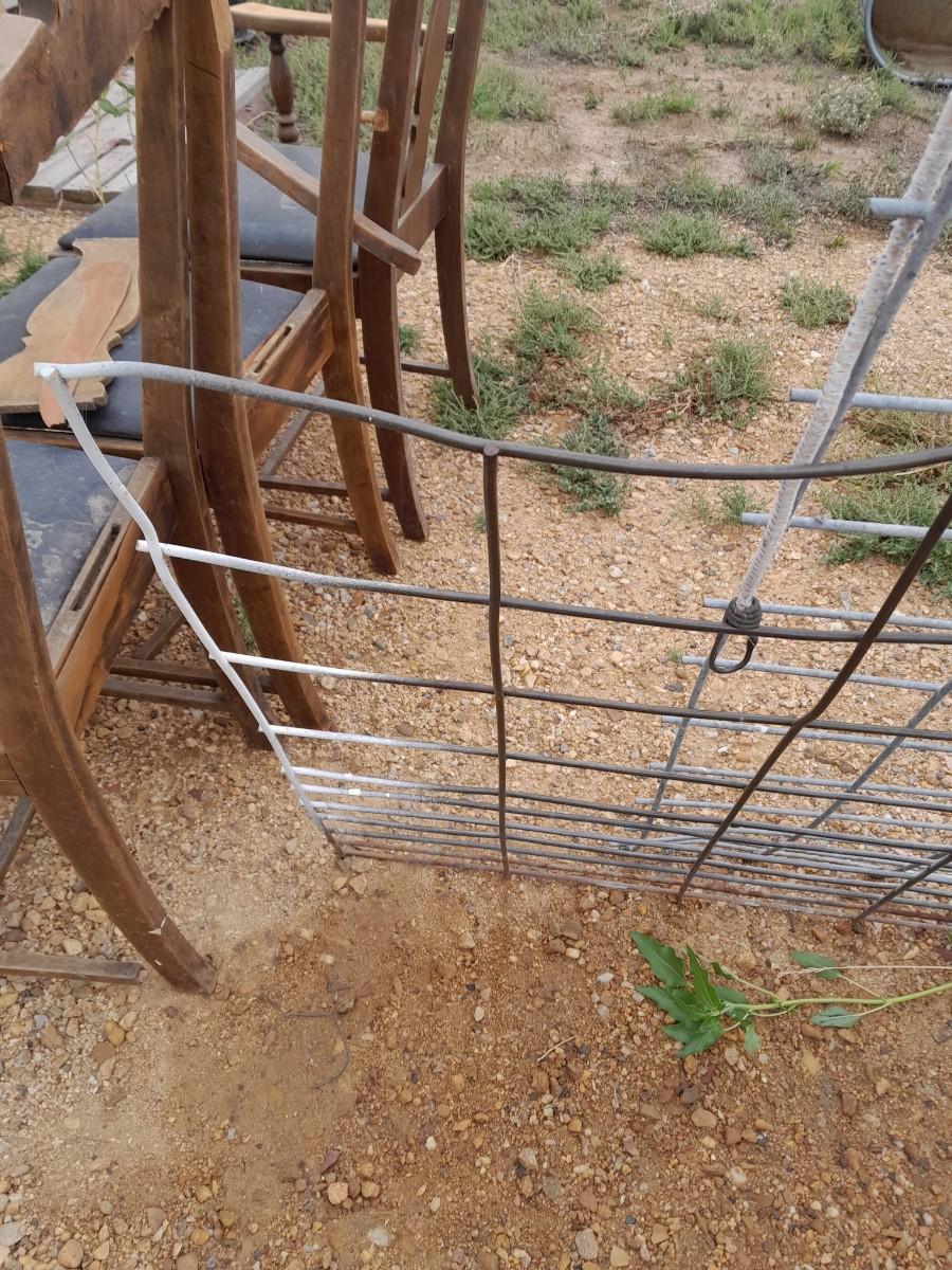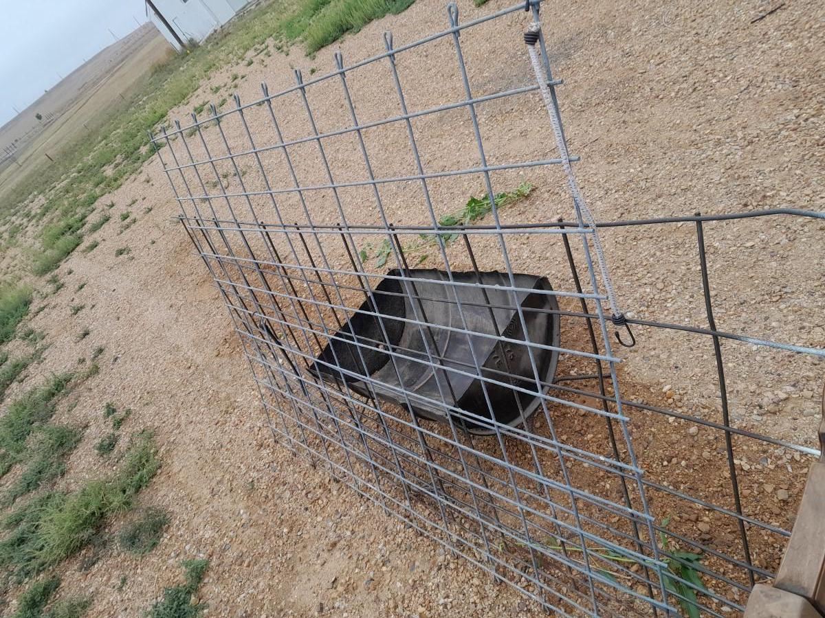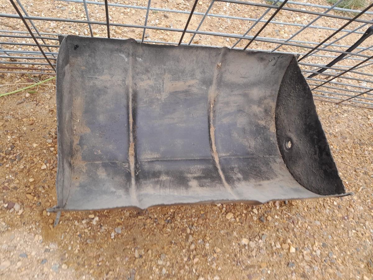 HALF BARREL FEED BUNK AND TWO PARTIAL HOG PANEL FENCING PIECES