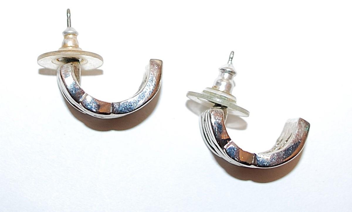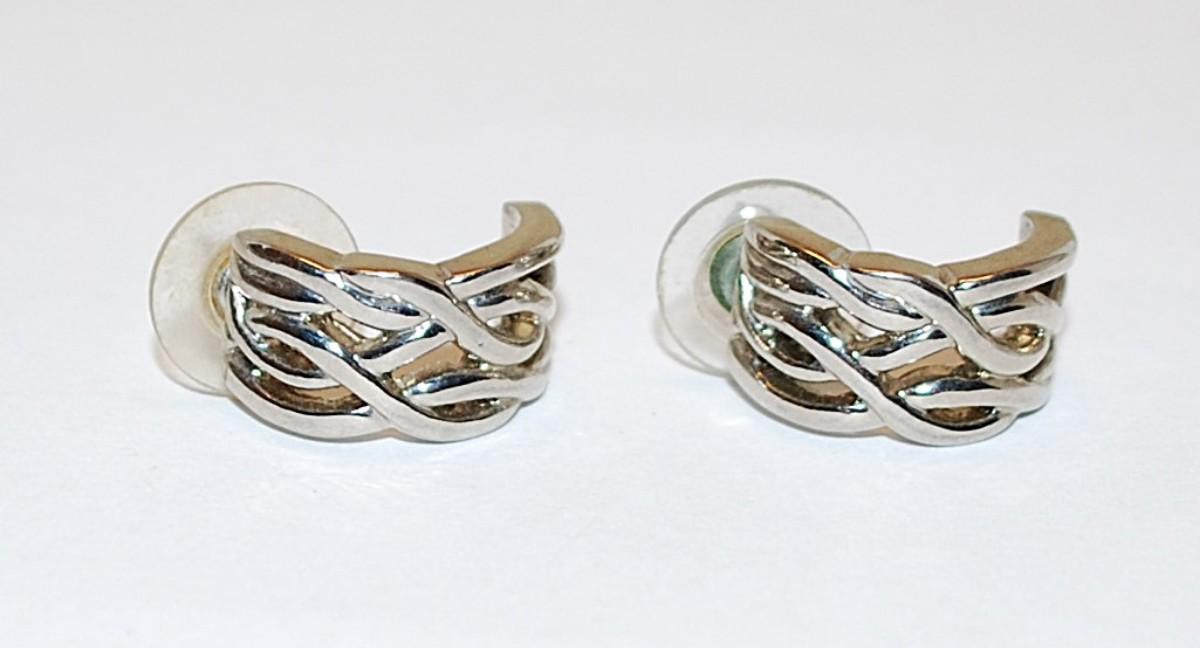 Half Circle Silver Colored CRISS-CROSS EARRINGS Set with Stud Post Clasp