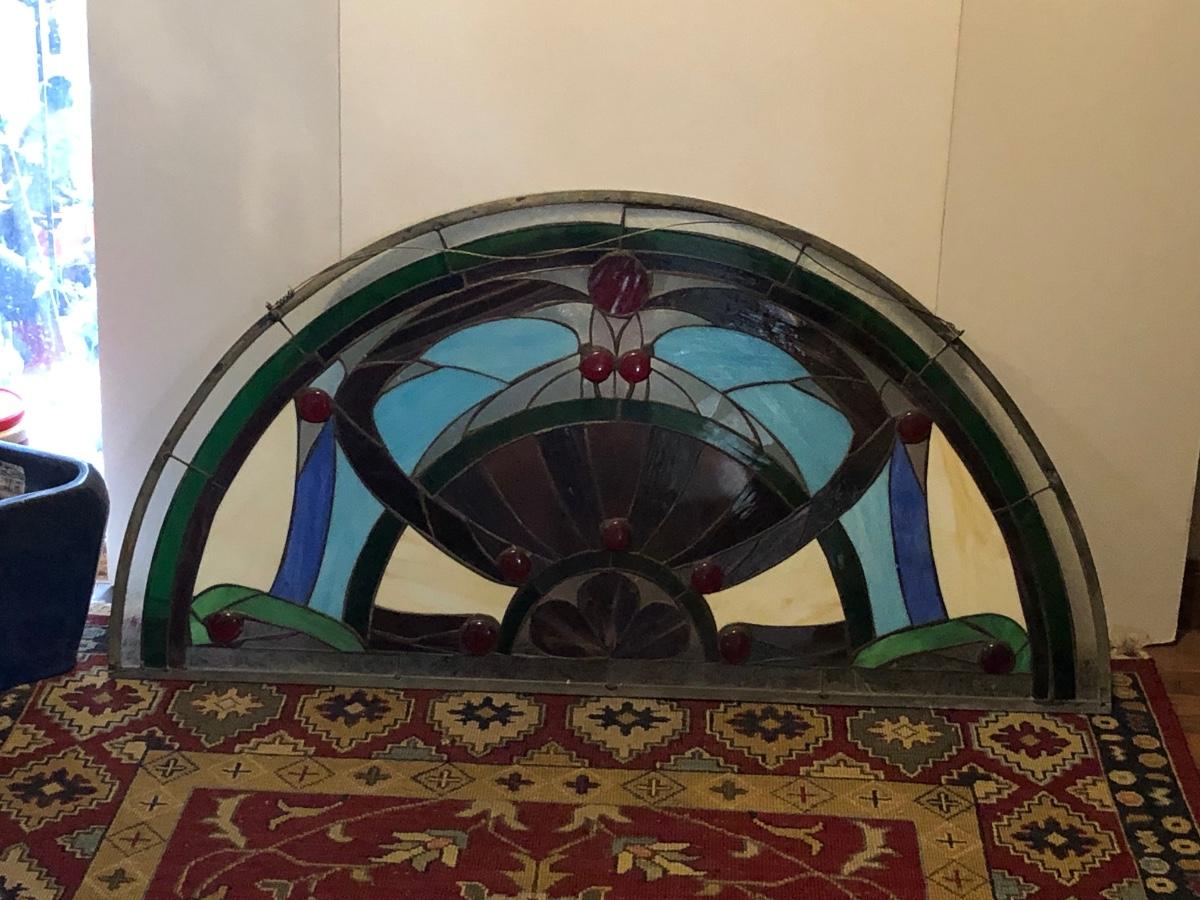 HALF MOON STAINED GLASS, UNIQUE MULTI-COLORS DESIGN
