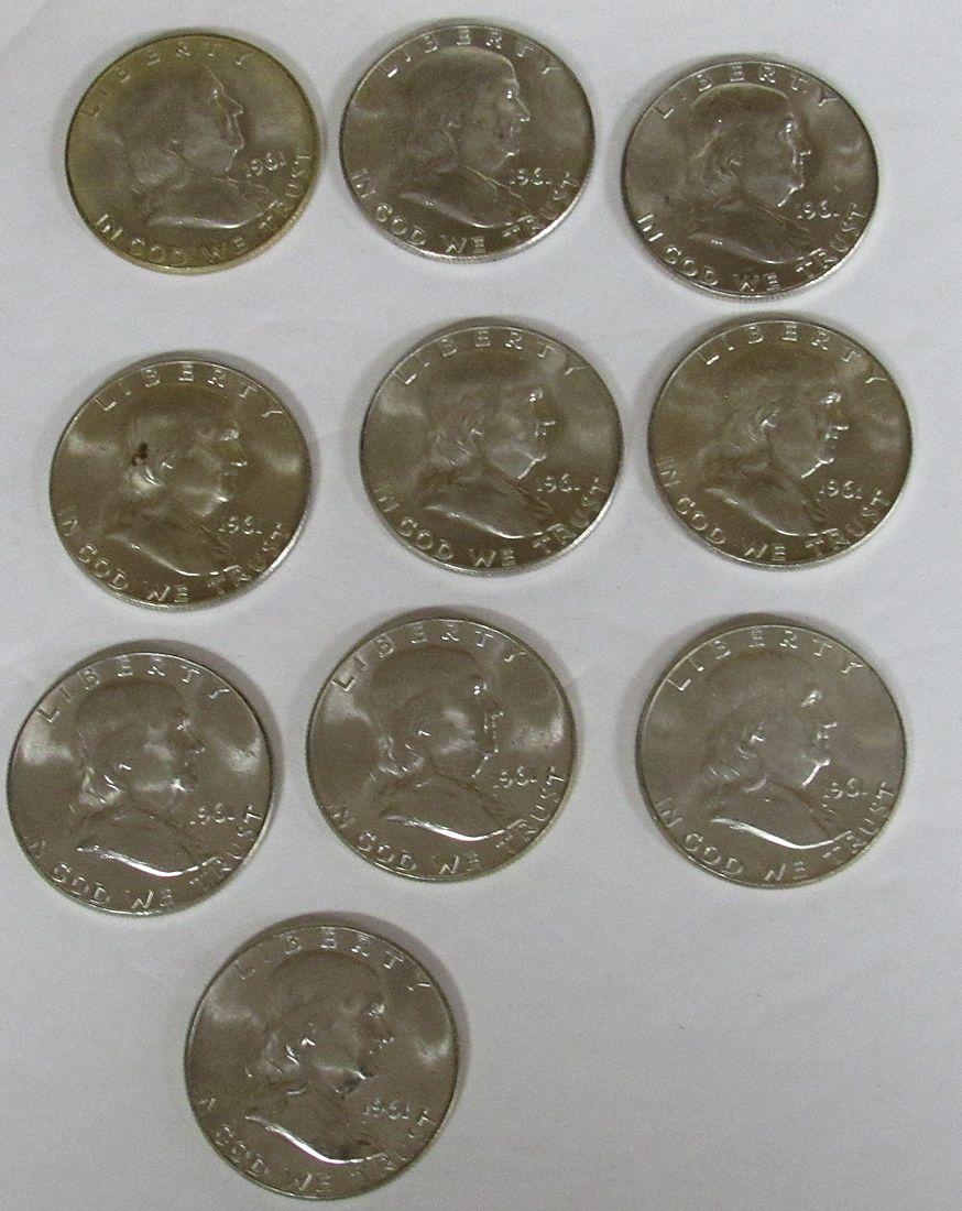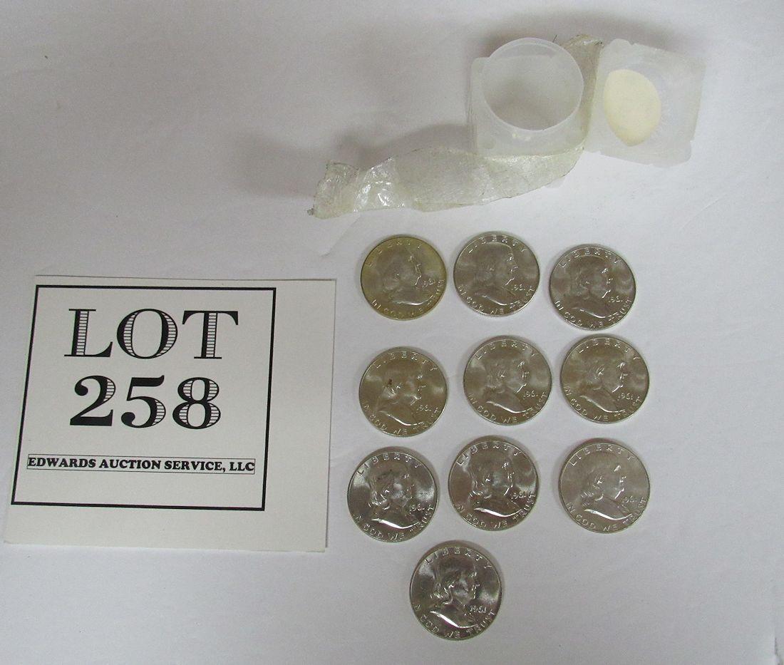 Half Roll Uncirculated 1961D Franklin Half Dollar Coins in Original Mailing Tube