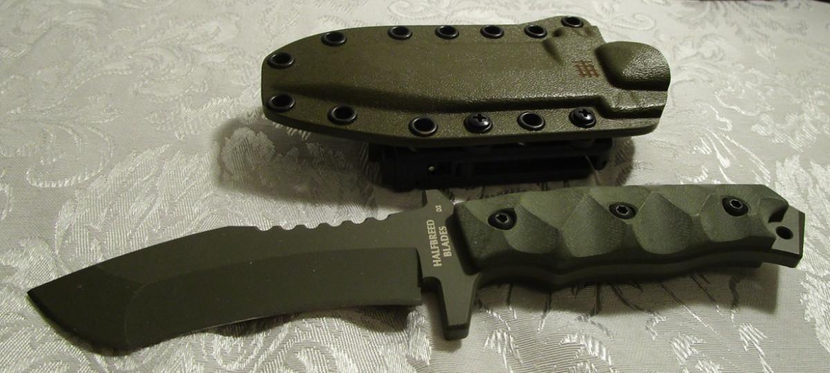 Halfbreed Blades Medium Clearance Knife (MCK-02 OD) K110 D2 recurve drop point blade