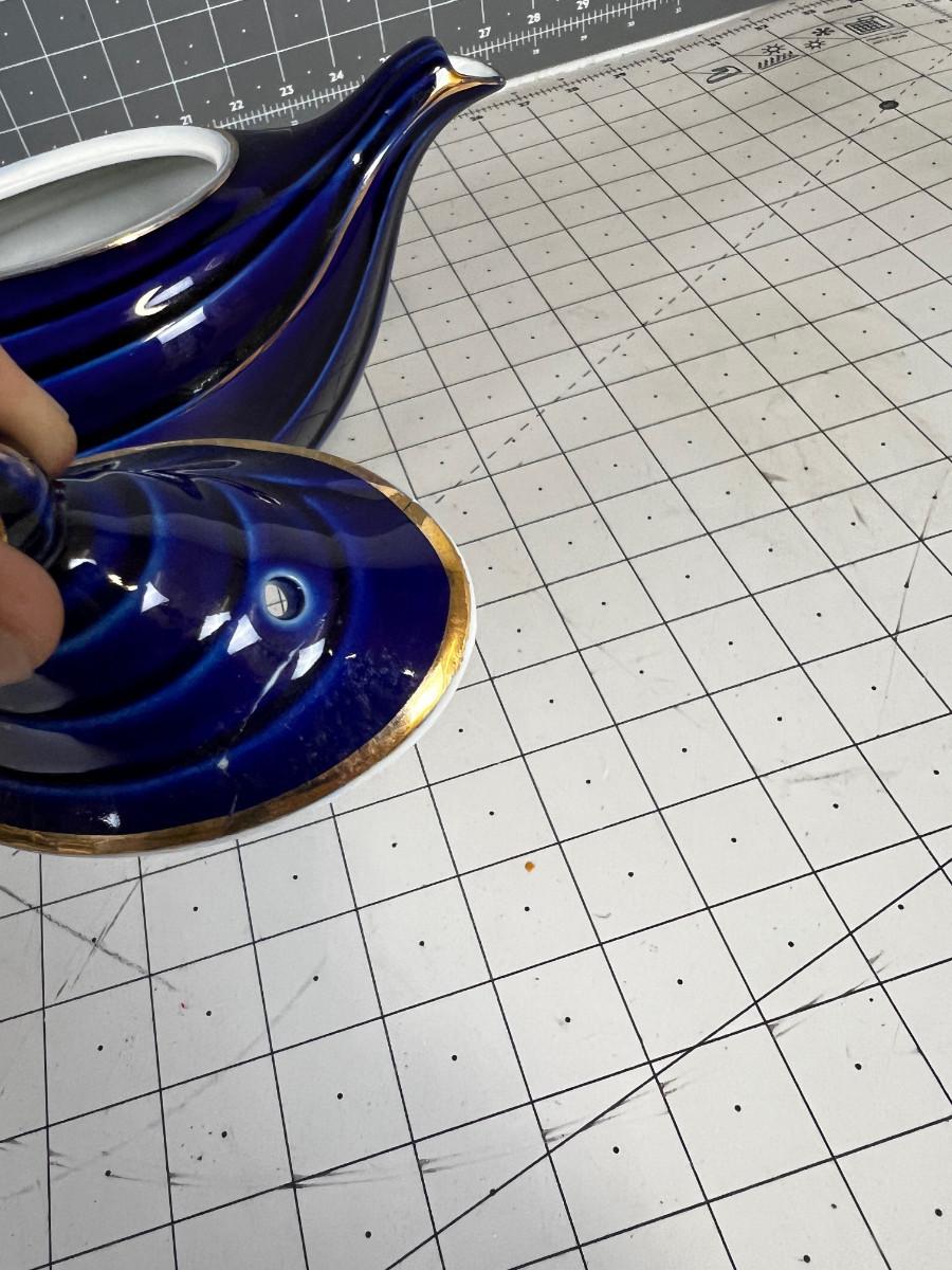 Excellent Find here yet the Lid has been repaired. Neat! But?