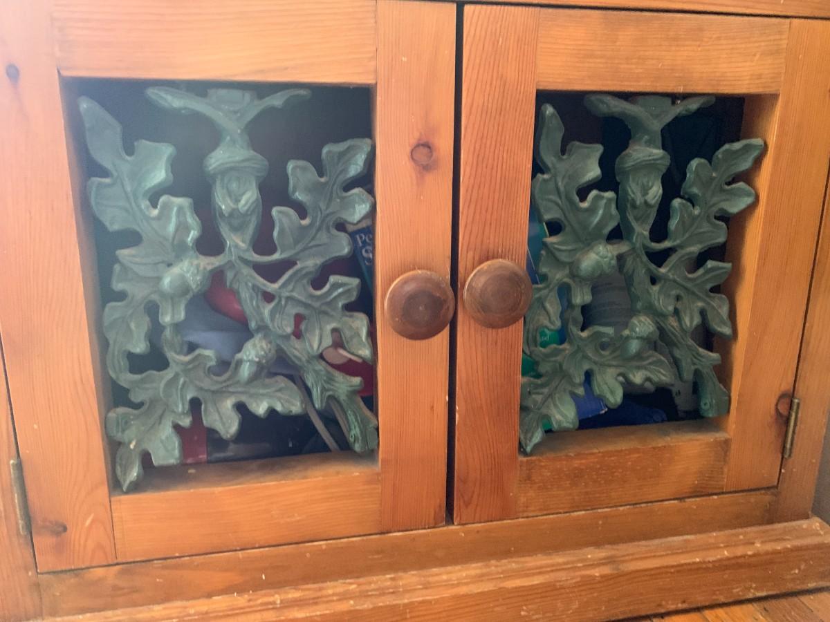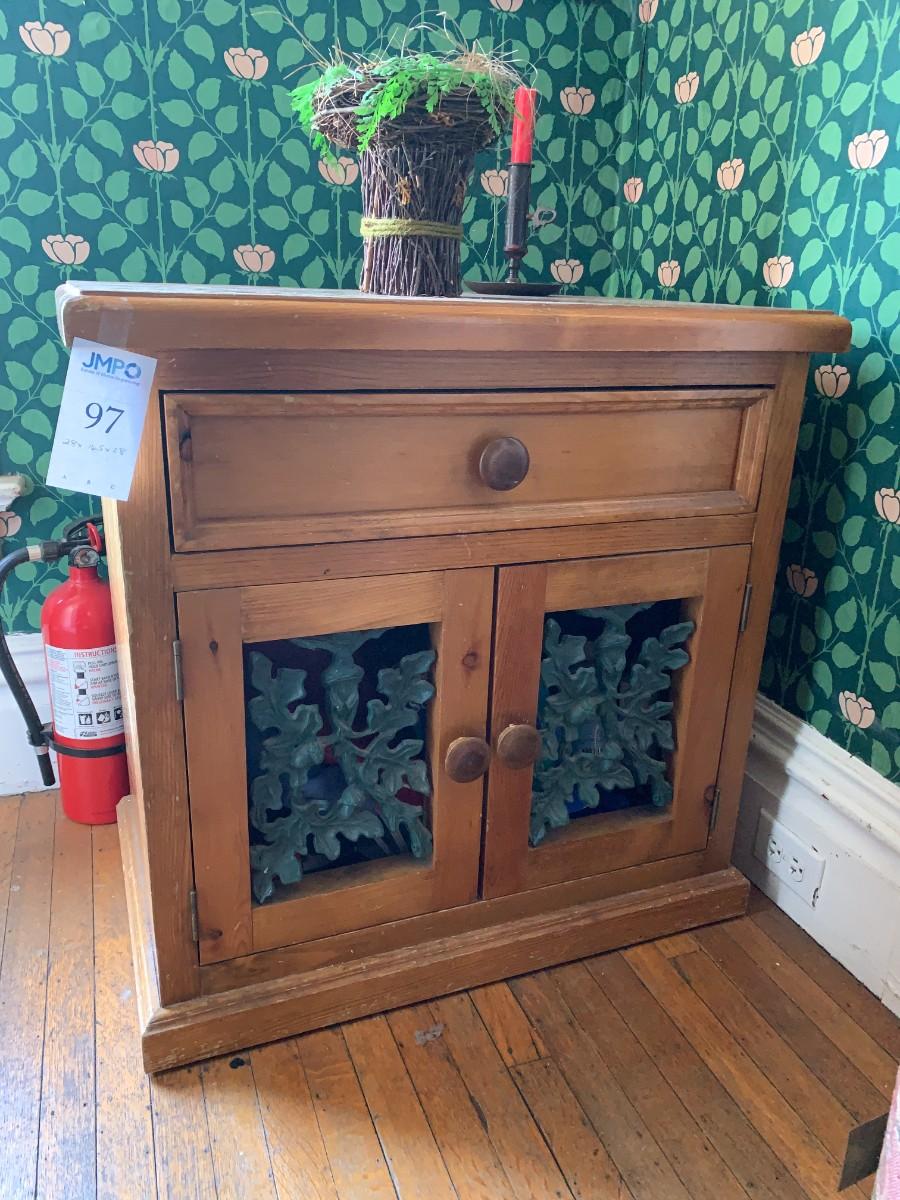 1 Drawer and 2 Door Cabinet with Green Iron Oak Leaf/Acorn Overlay