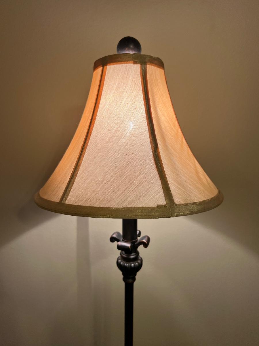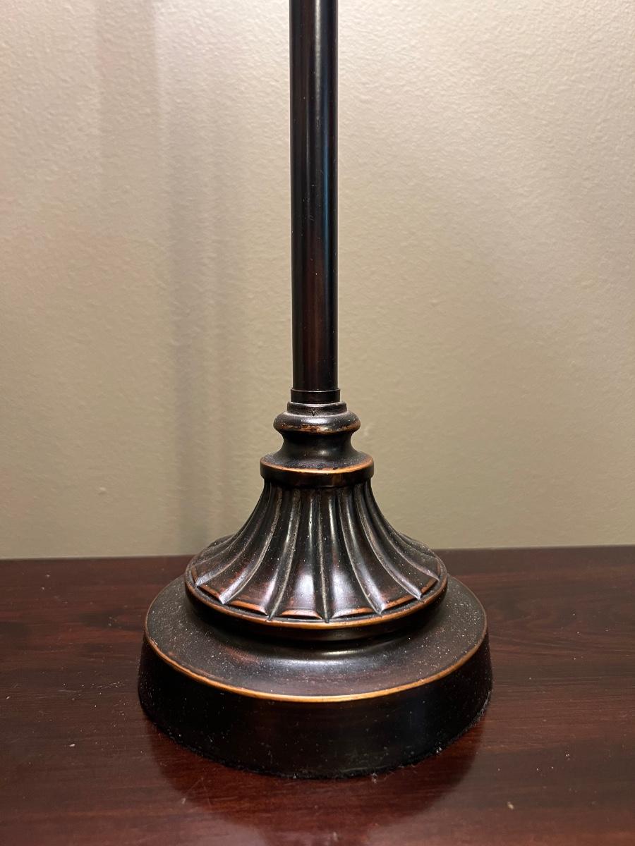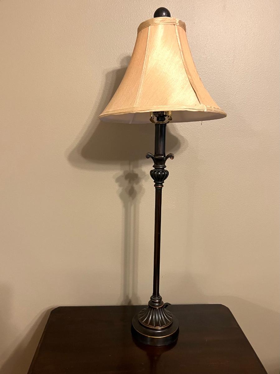 This bundle can be used in several different ways. Included is a 3 Drawer Side table measuring 28 inches tall, 16 inches deep and 27 inches wide. lamp measures 30 inches tall, Metal Wall Decor measures 20 1/2 inches tall. The lamp shade does not fit snug to the lamp. The table bottom has a few marks at the very bottom, see pictures.