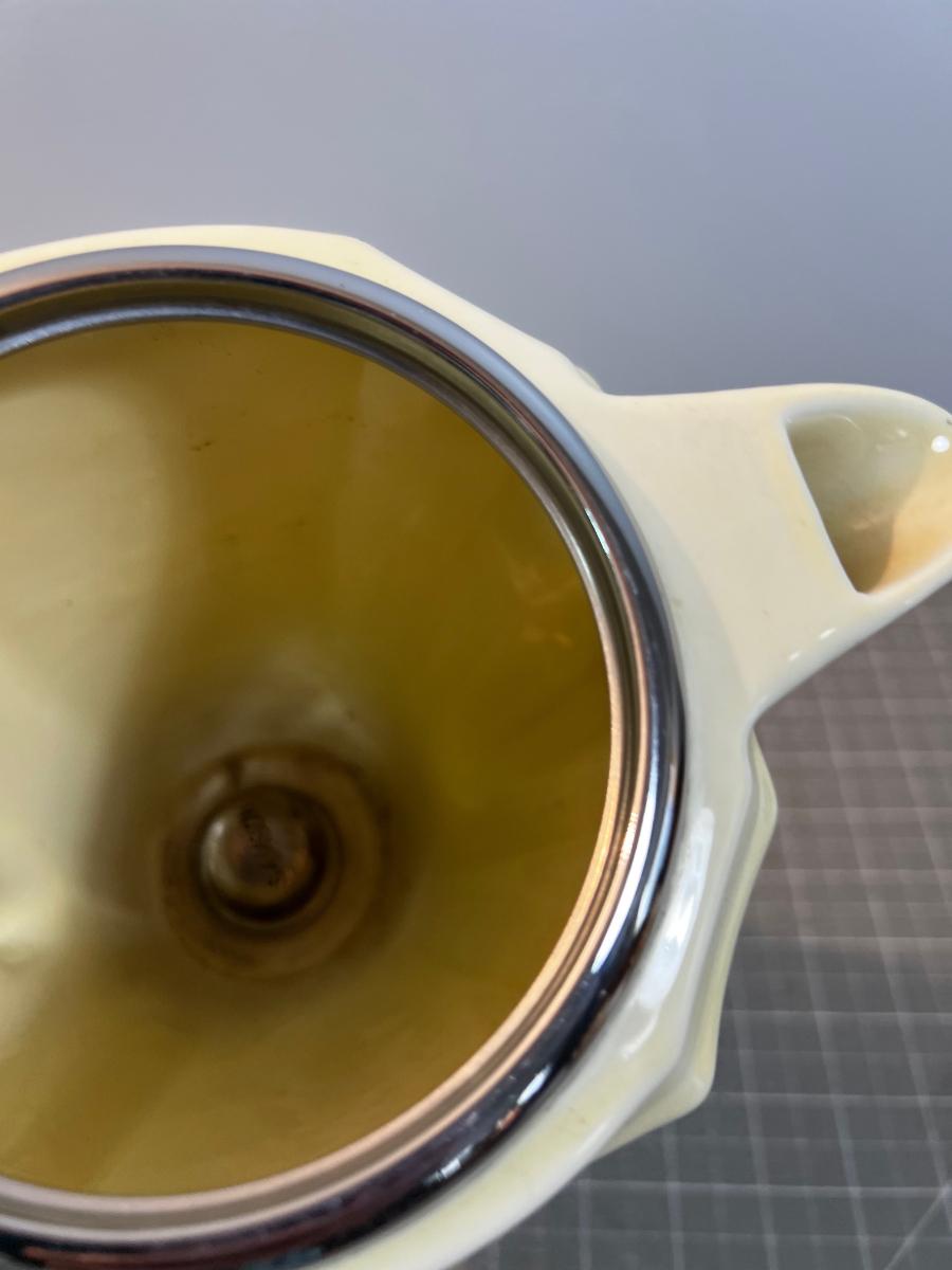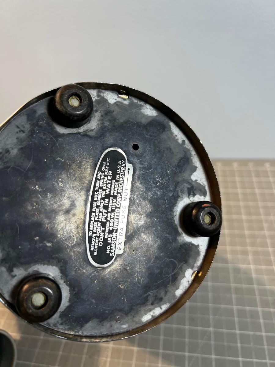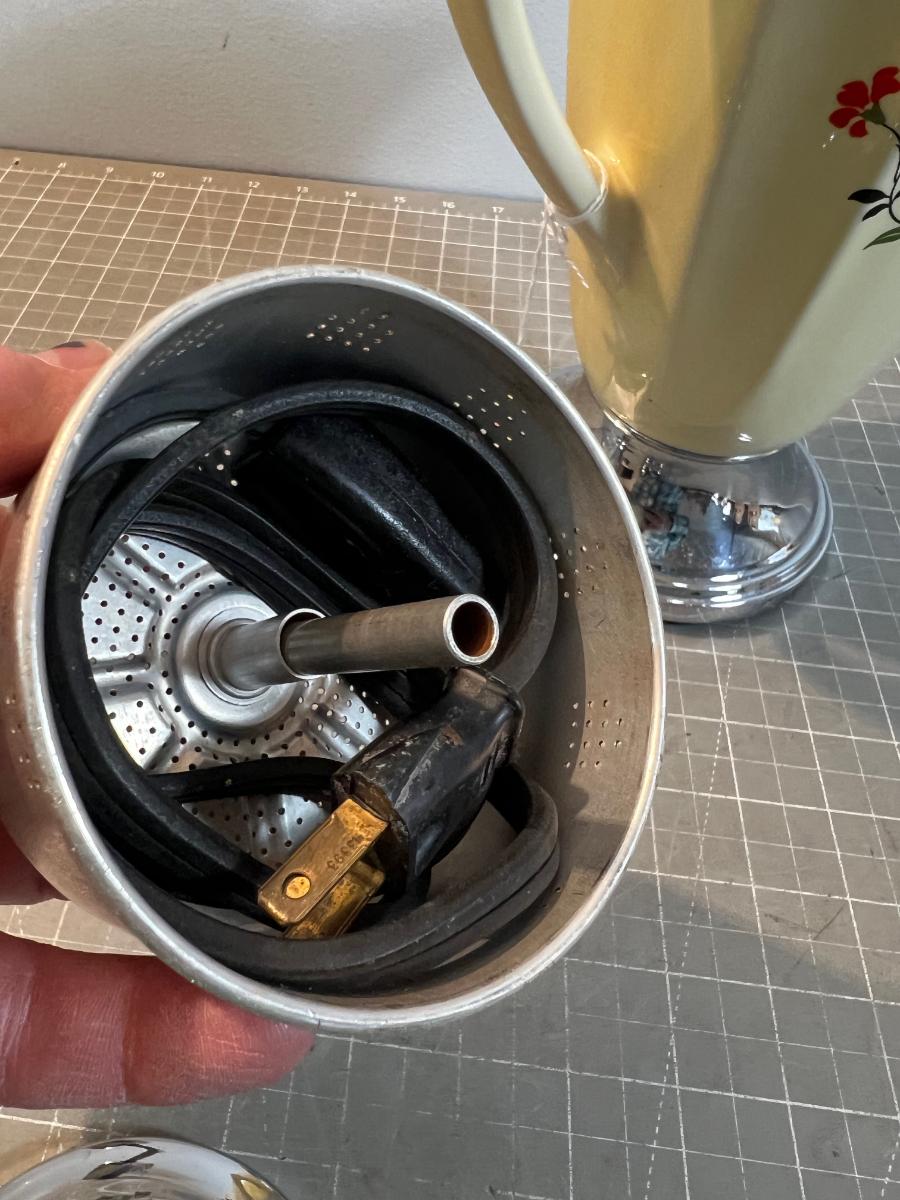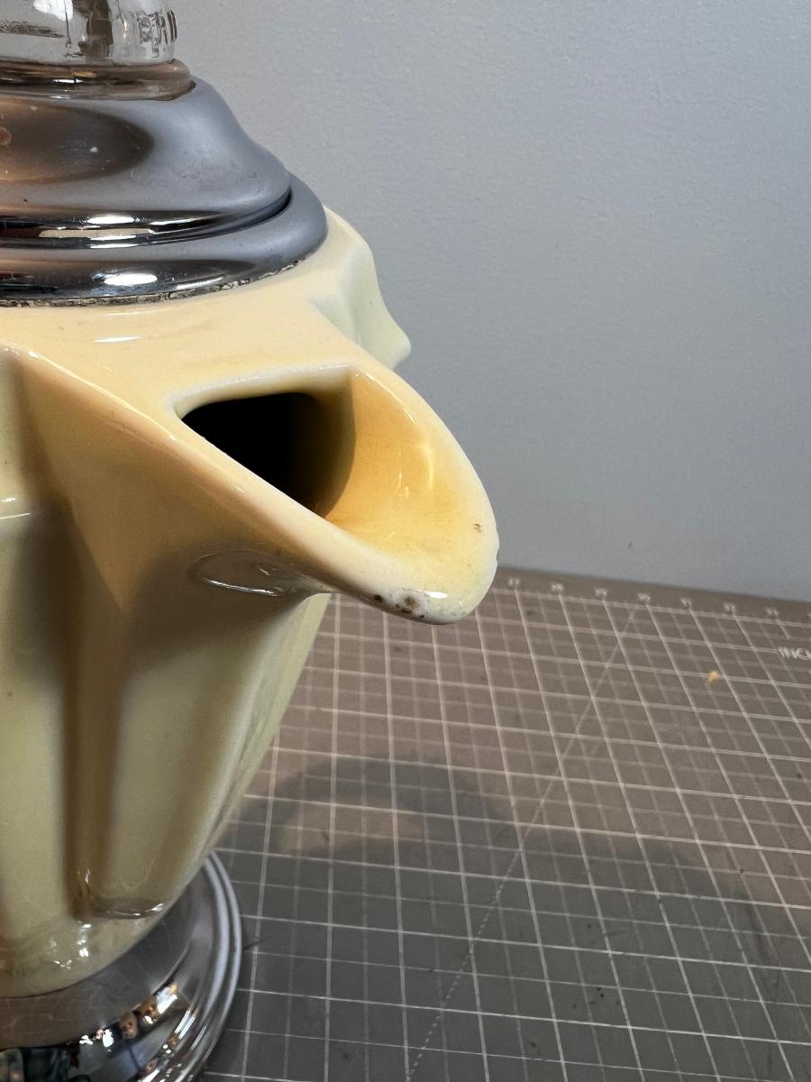 Has a cord - not tested. A couple of very very light chips on the spout. Good Condition Appearance. Not tested. Glass Top. Please Bring Paper and Boxes.