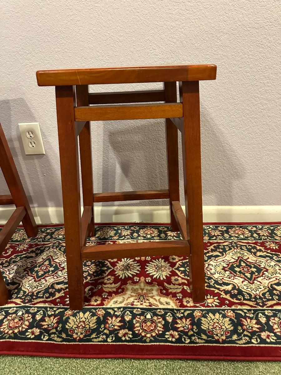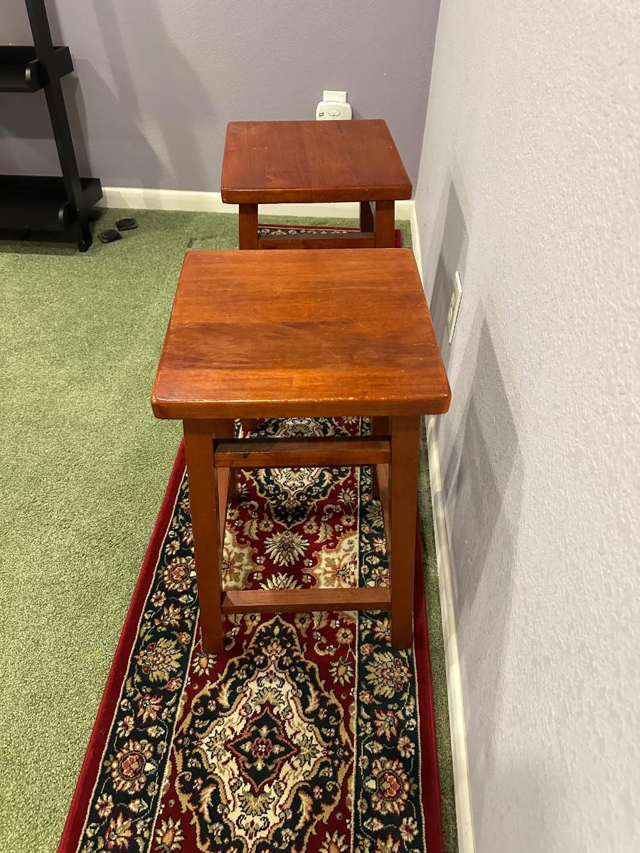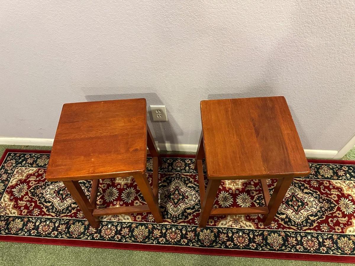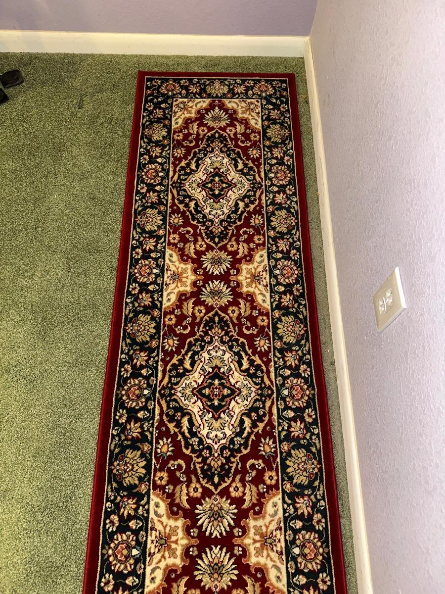 HALL RUNNER RUG, 2 STOOLS AND A TABLE LAMP